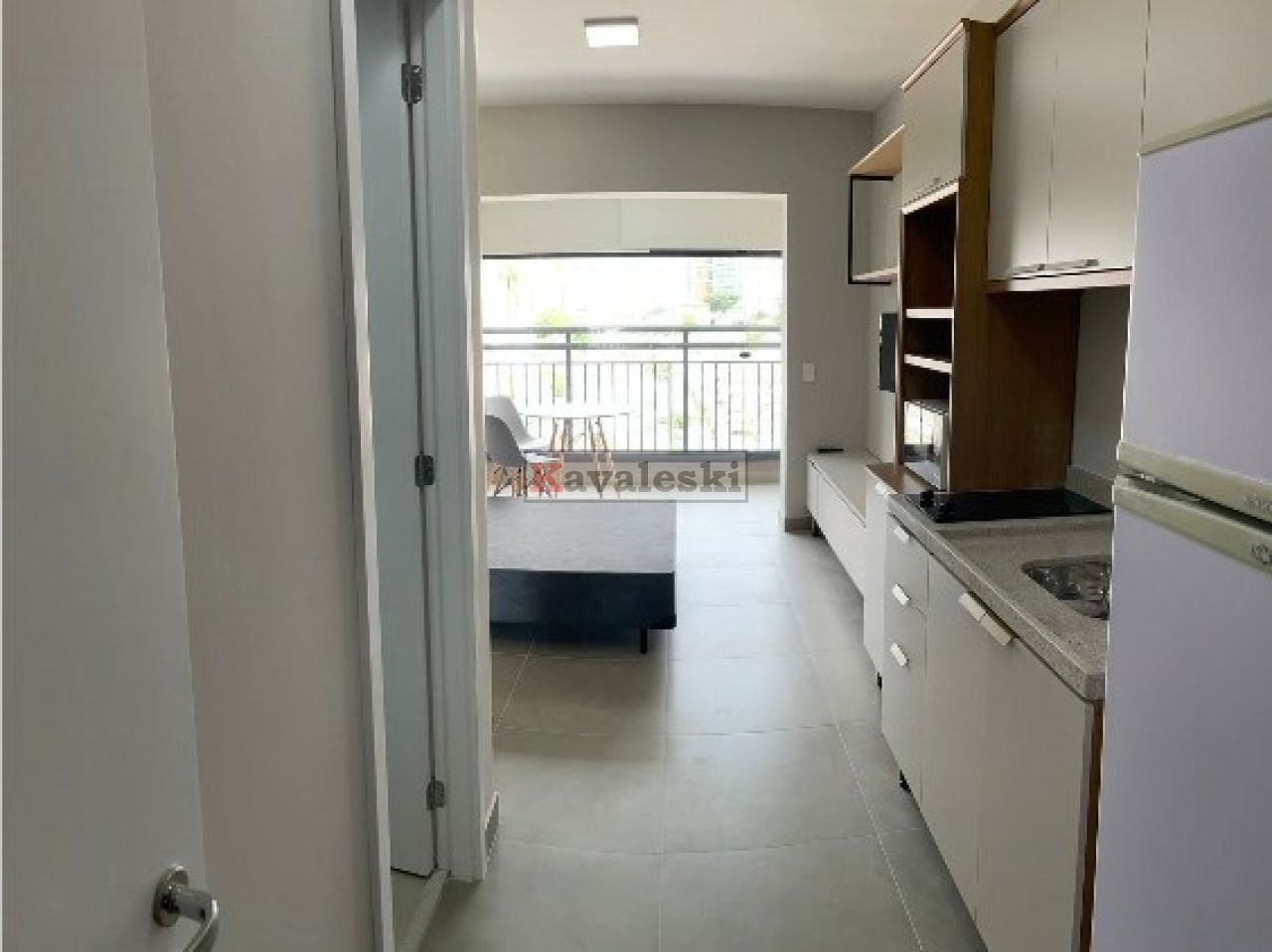 Locação de studio de 24m², 1 banheiro com ventilação natural, mobiliado.