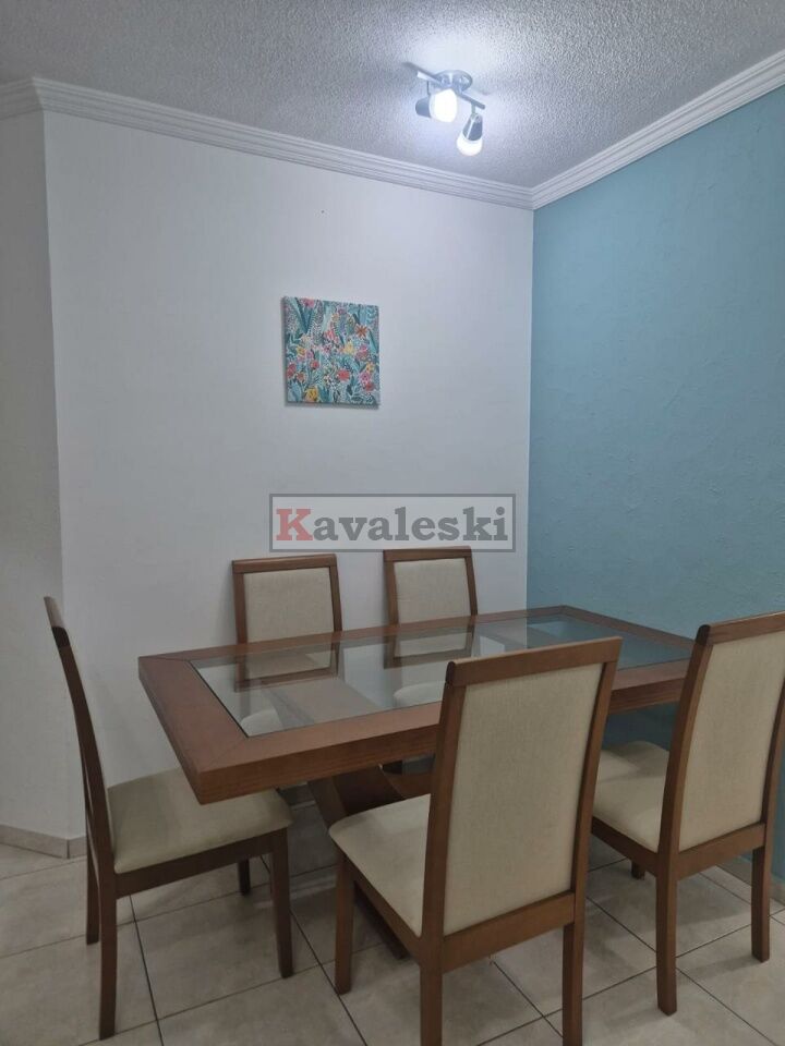 Apartamento MOBILIADO com 2 dormitórios com armários, cama de casal, sala com sofá, Rack para TV, mesa de jantar com 6 cadeiras, cozinha com armários, geladeira, fogão, maquina de lavar.