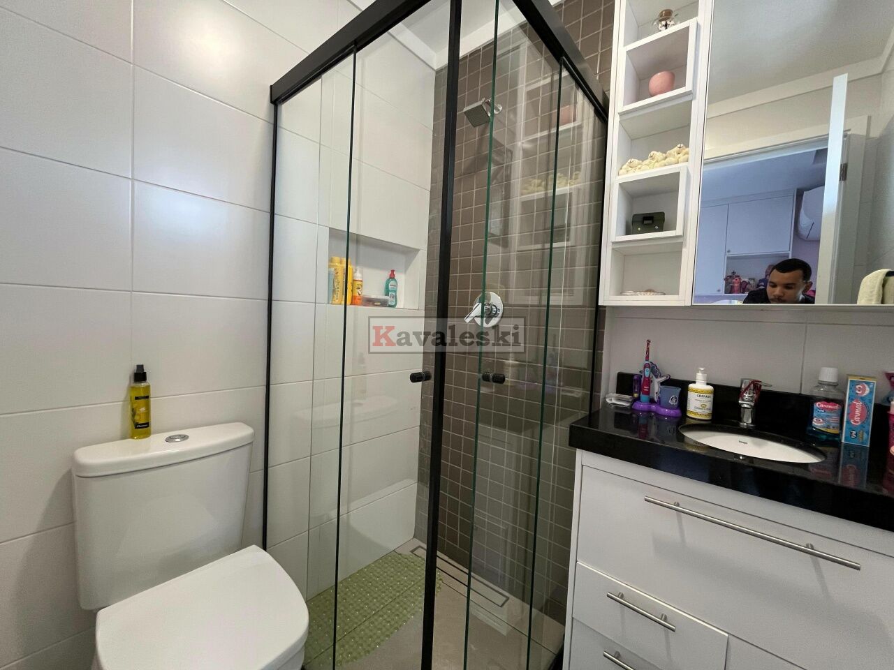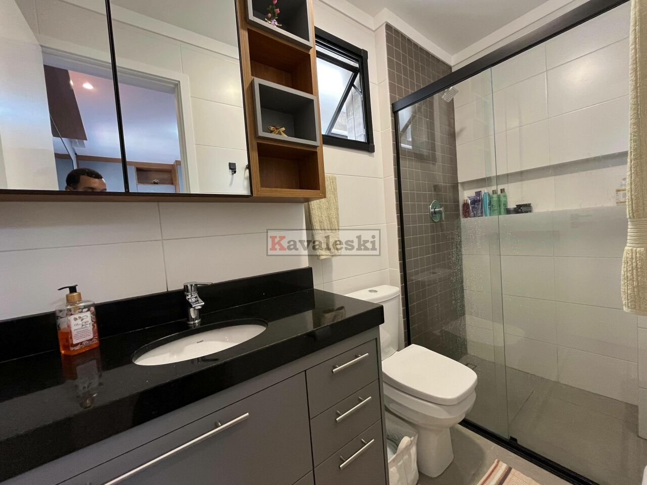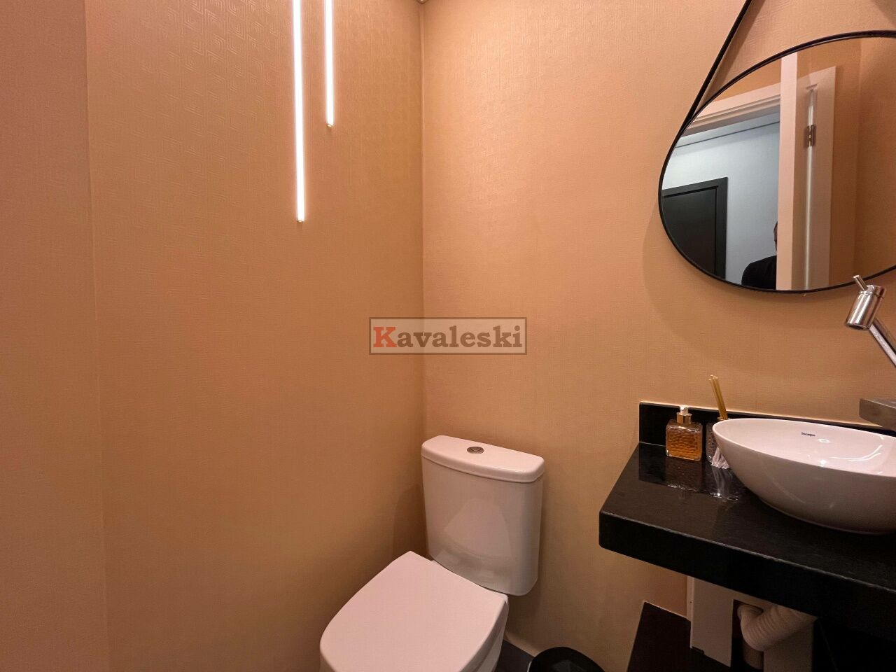 1 Lavabo moderno e sala de estar/jantar ampla e bem iluminada