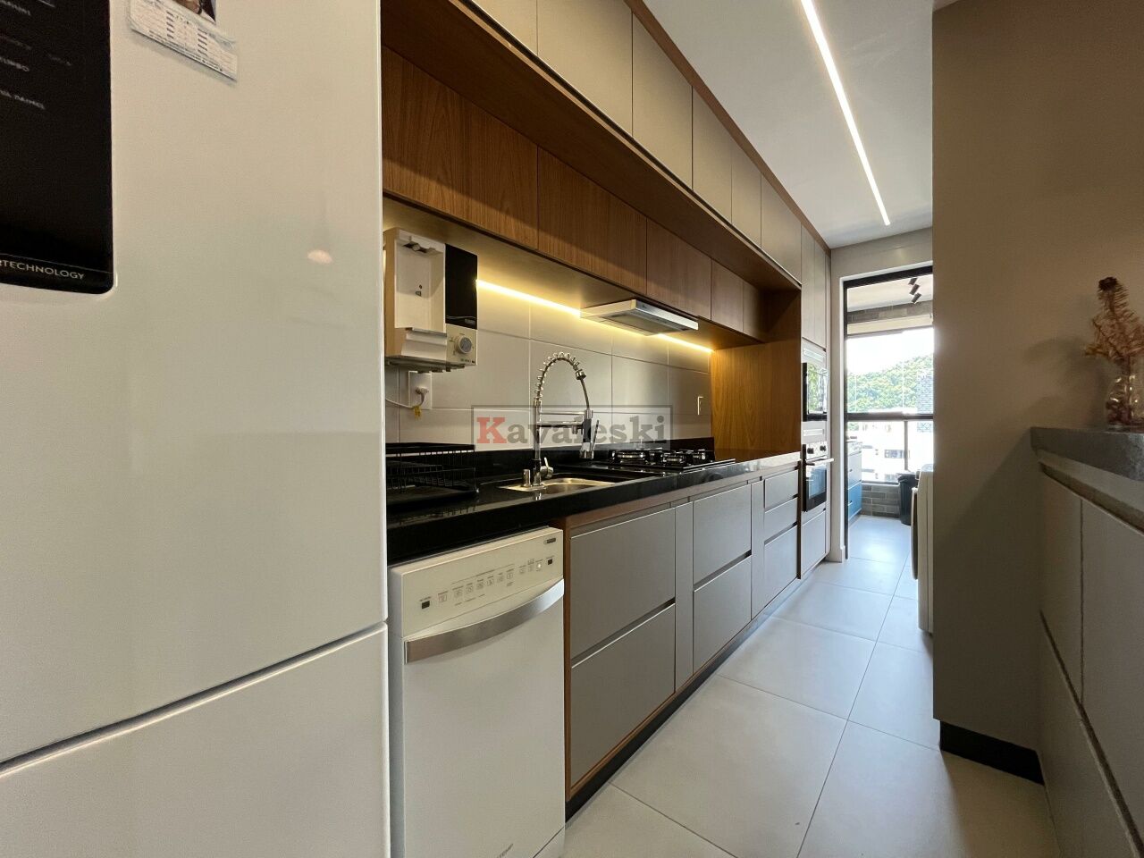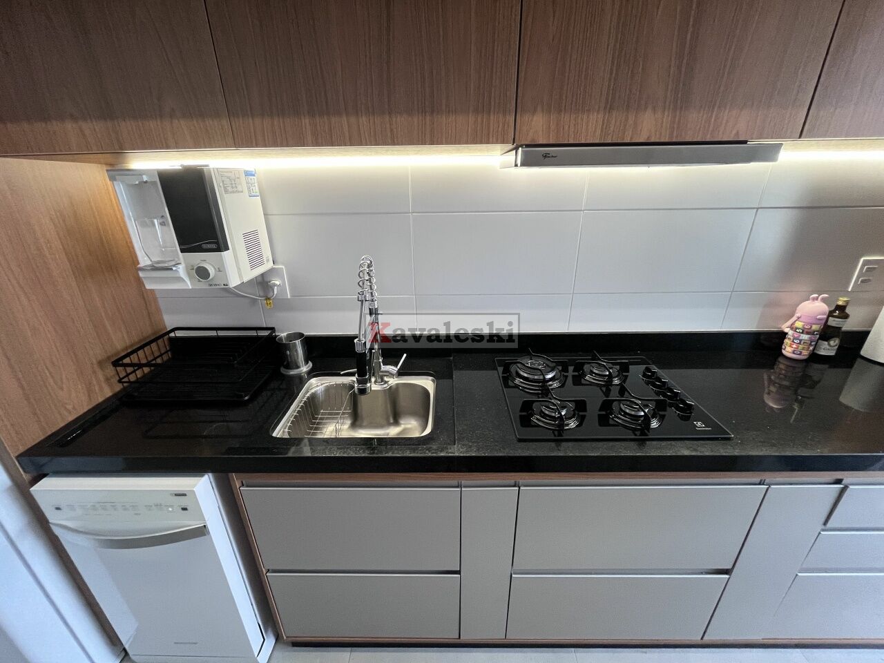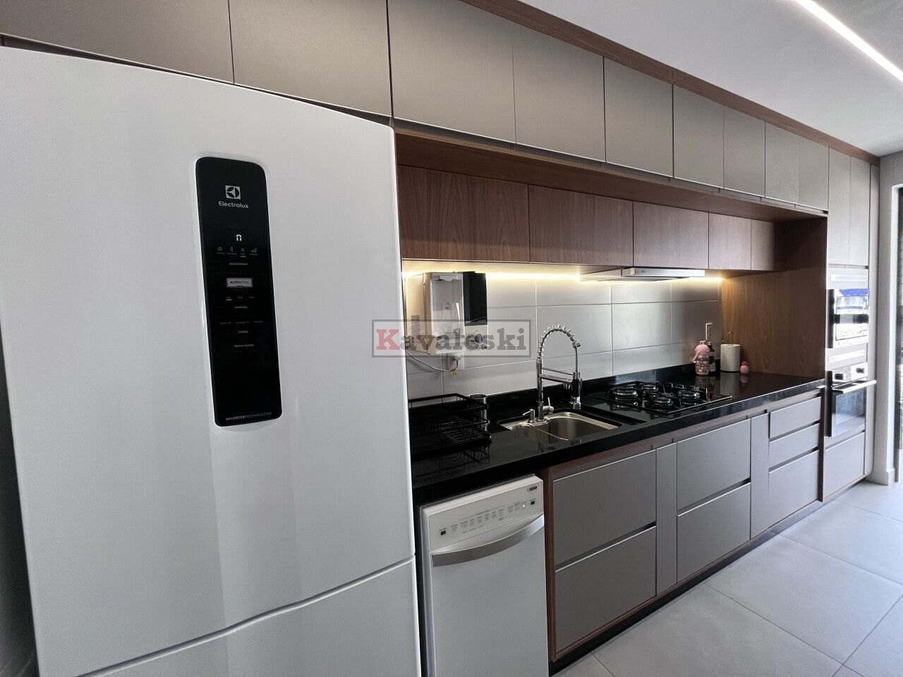 Cozinha planejada com armários e eletrodomésticos de qualidade;