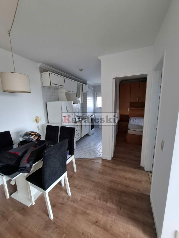 37 metros, varanda/sacada, área de serviço, cozinha com armários e geladeira, fogão, sala com mesa, 1 dormitório com armário embutido e cama com colchão, 1 banheiro com box de vidro, varanda com ótima uma vista sensacional e 1 vaga de garagem coberta no subsolo.