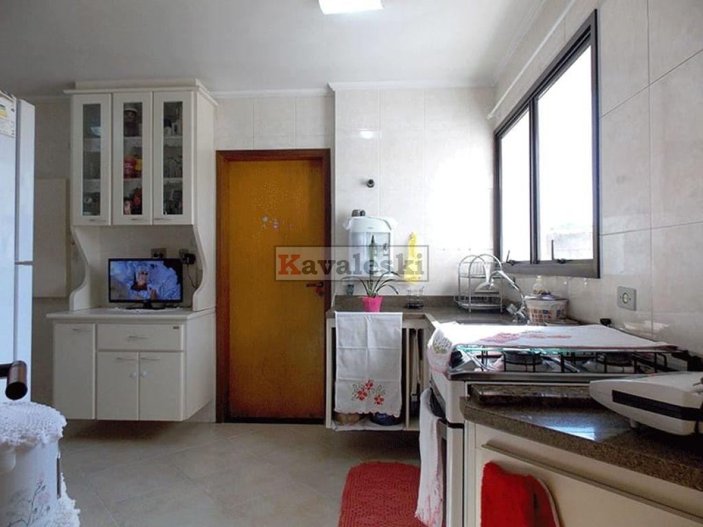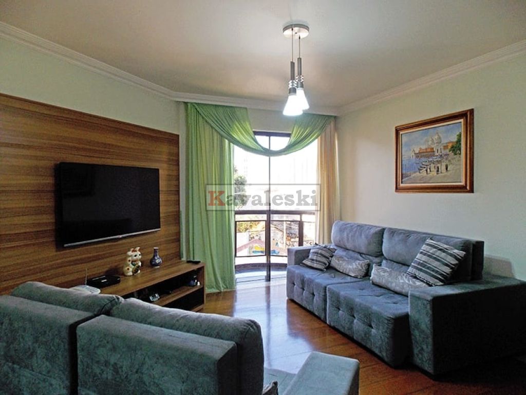 Apartamento 118 m² com 3 dormitórios (1 suíte), lavabo integrado à Sala de Jantar/Estar, cozinha ampla, com área de serviço, quarto de empregada/despensa e banheiro.