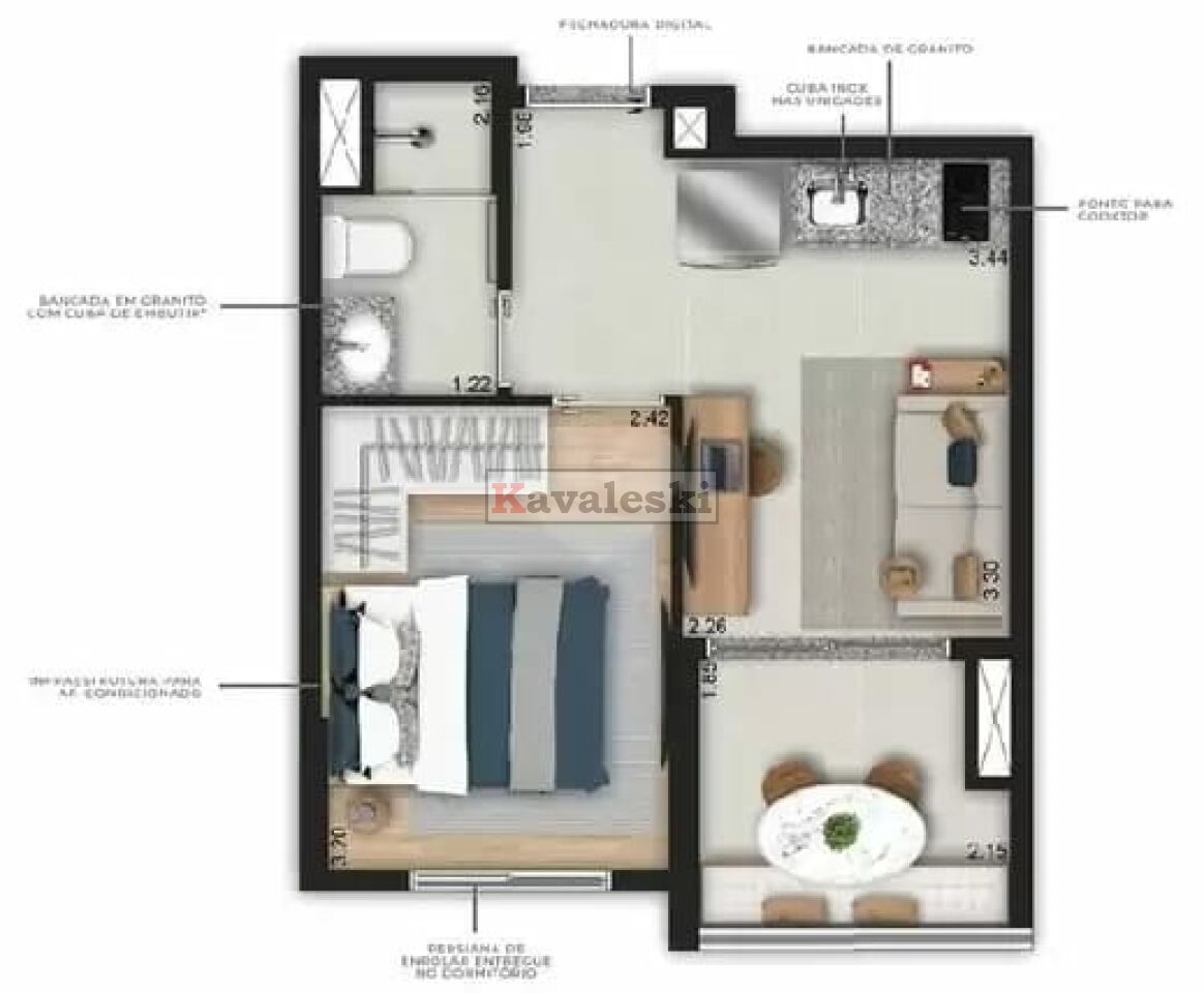 Com 28,5 m², 1 dormitório, 1 banheiro
