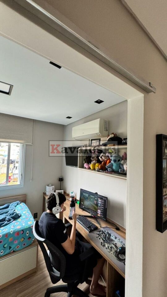 Porcelanato Eliane de primeira linha, rodapés branco de Porcelanato, espelho bronze na sala, espelho dos banheiros, granito preto absoluto, roda base, banheiros com pias esculpidas, lâmpadas de Led com acabamento preto, box Elegance, móveis planejados, coifa Tube da Tramontina, pintado a menos de 1 anos e gesso com cortineiro e iluminação, ripado na caixa de ar Condicinado e jardim vertical, banheiros com nicho iluminado e pisos dos quartos e corredores que imitam madeira.