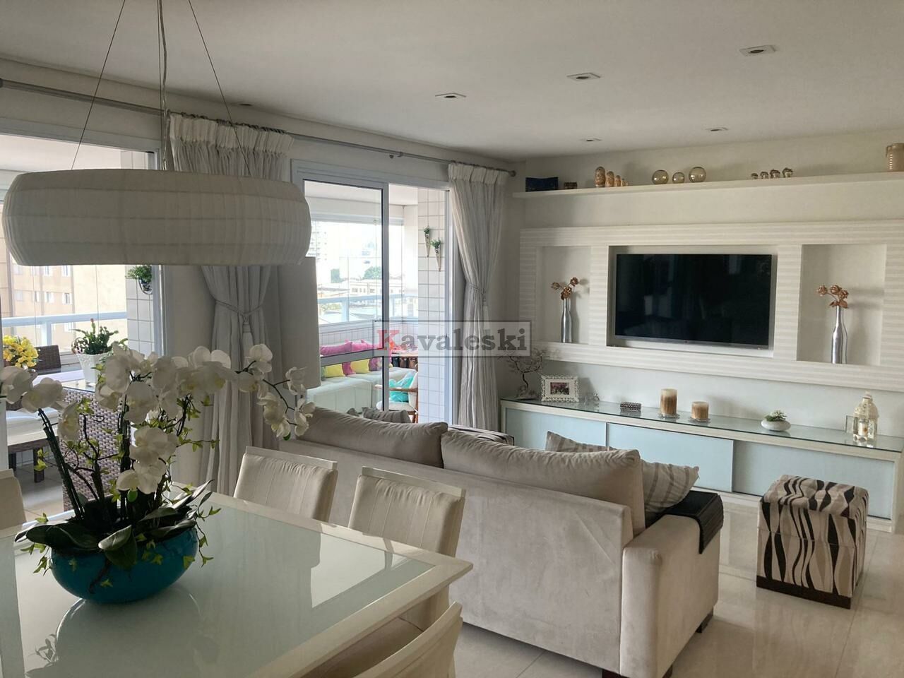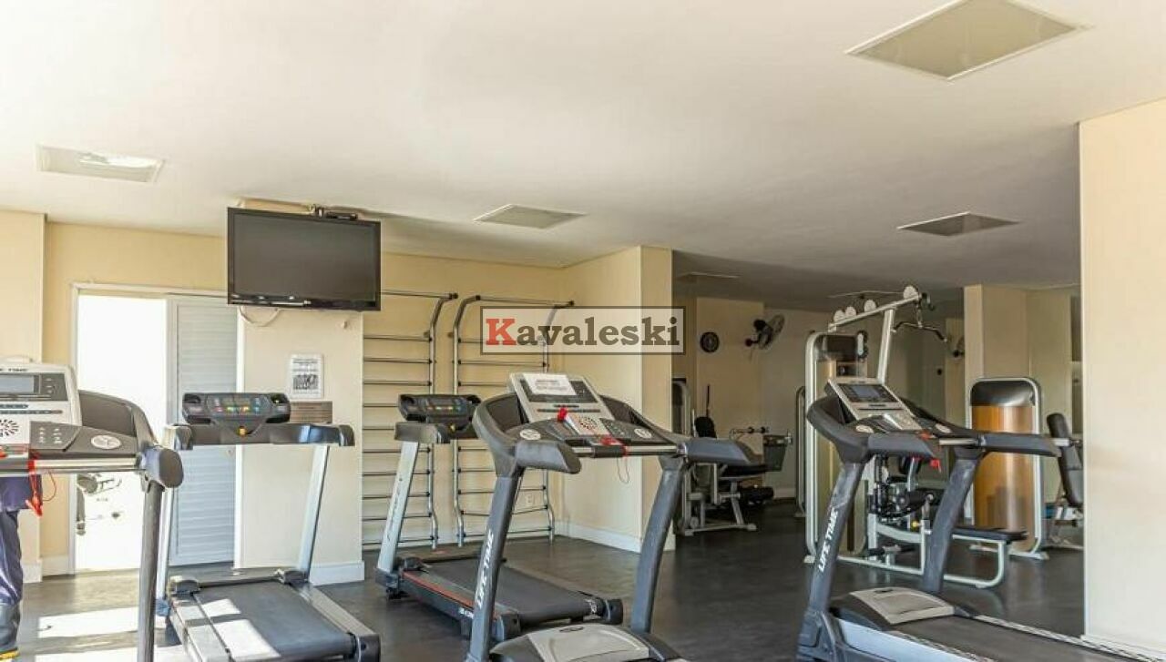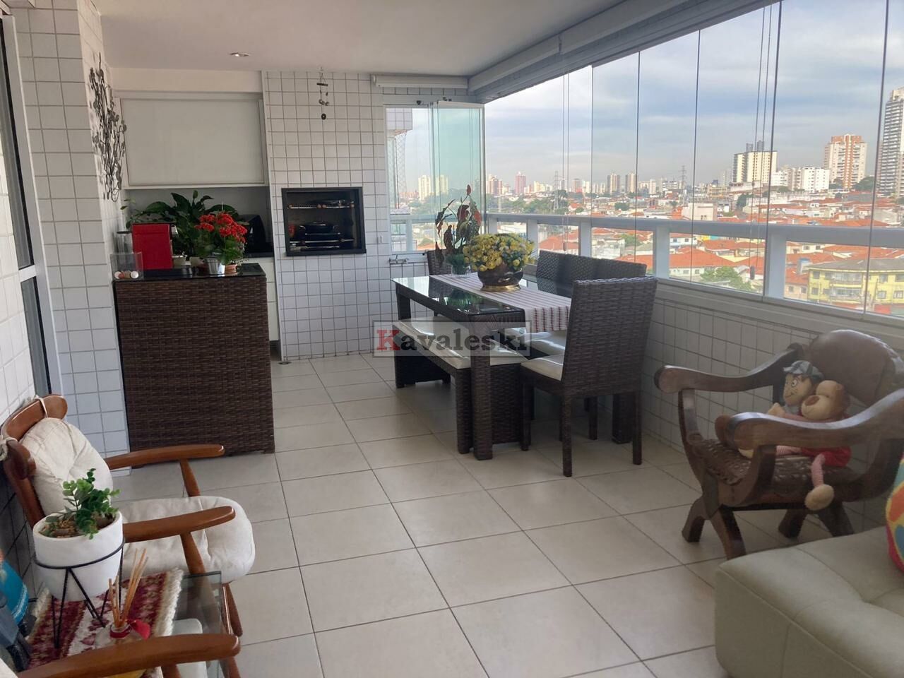 Sala com painel/armário planejado, integrada à varanda gourmet. Piso em porcelanato, pias em mármore, aquecedor a gás, varanda com churrasqueira e armários de ótima qualidade.