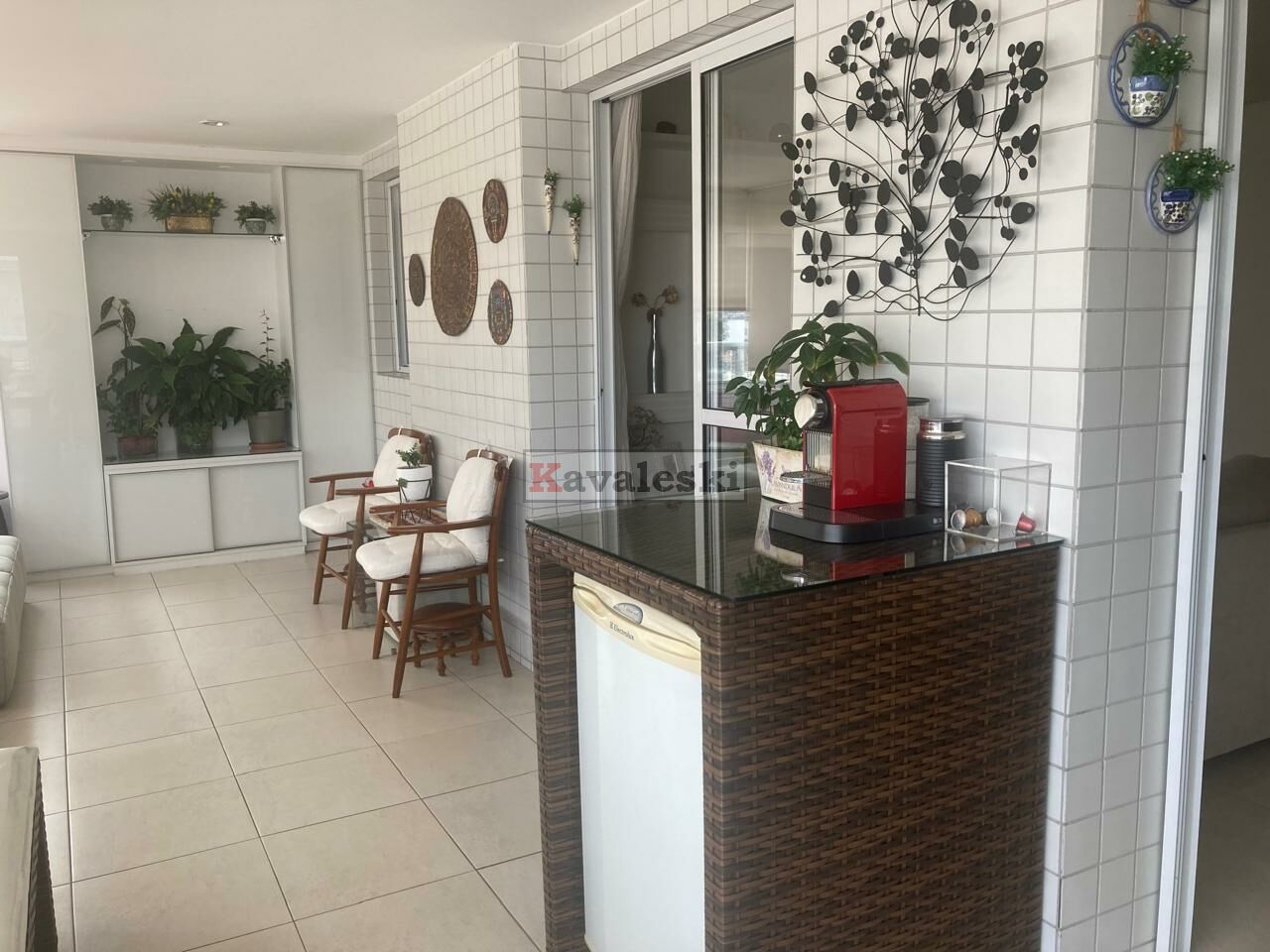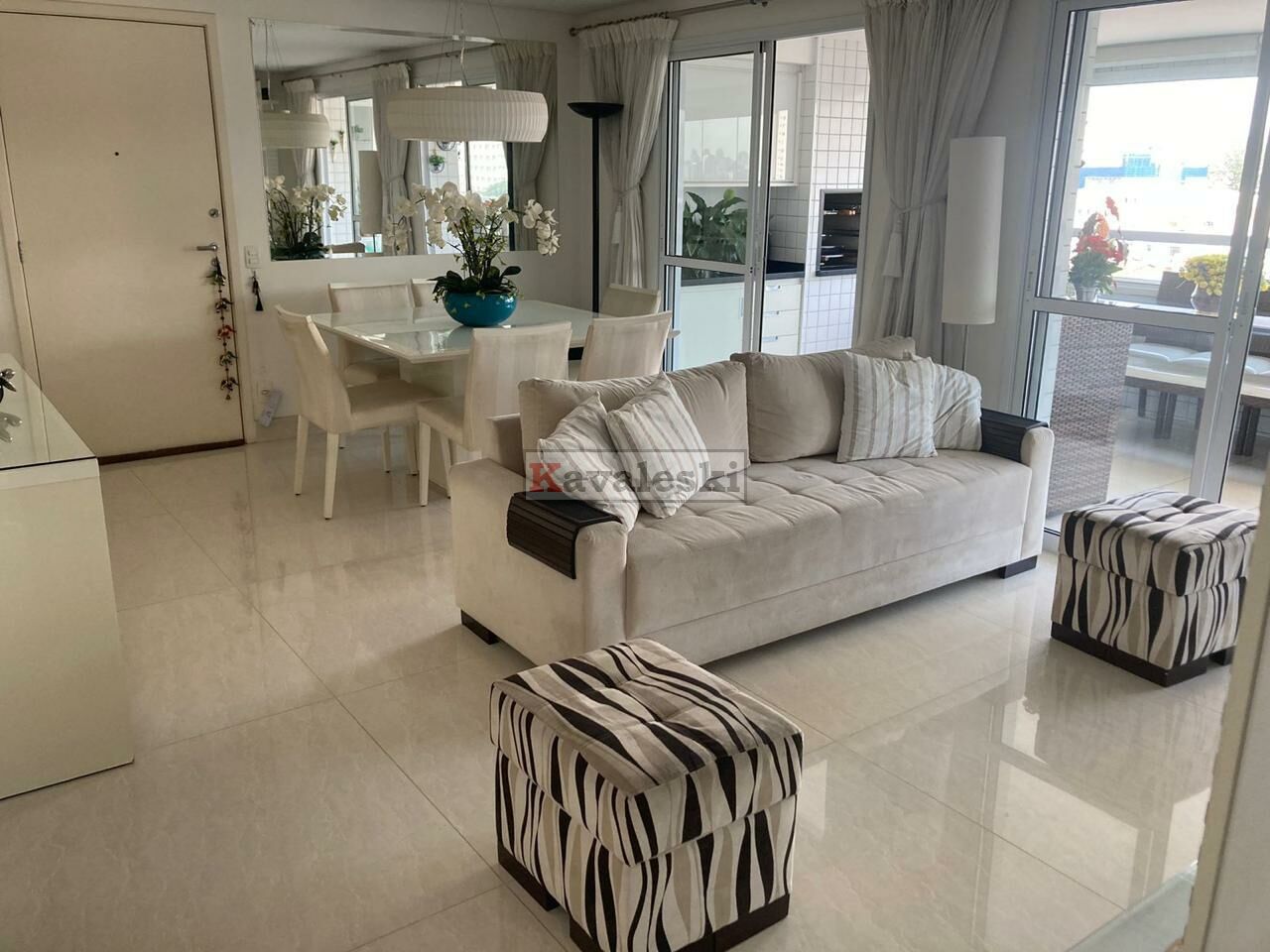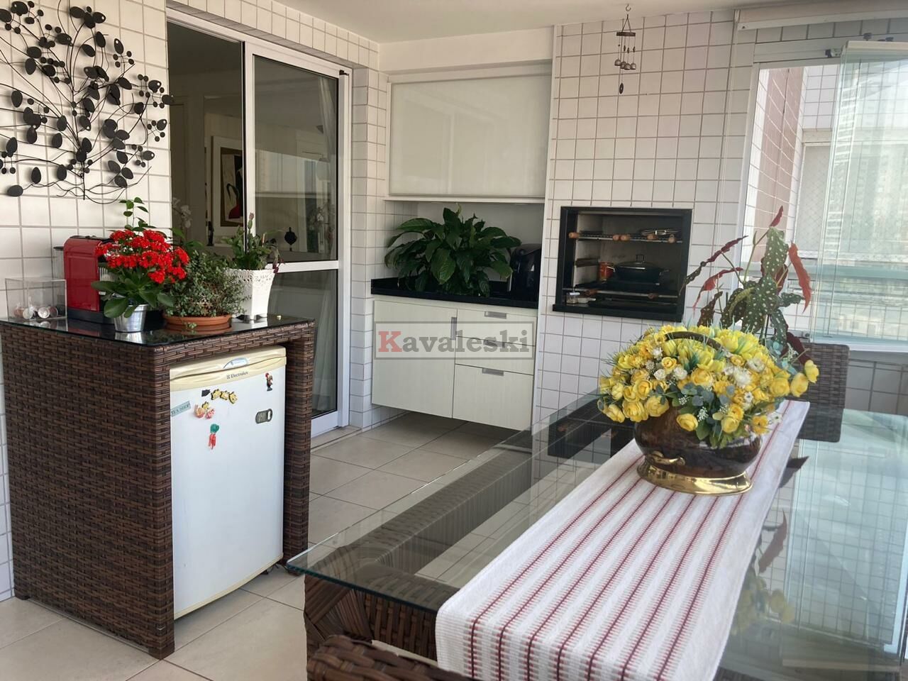Sala com painel/armário planejado, integrada à varanda gourmet. Piso em porcelanato, pias em mármore, aquecedor a gás, varanda com churrasqueira e armários de ótima qualidade.