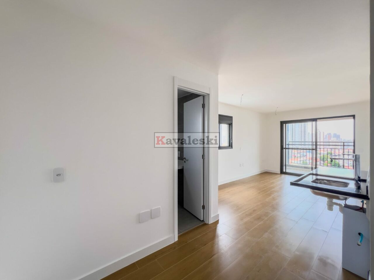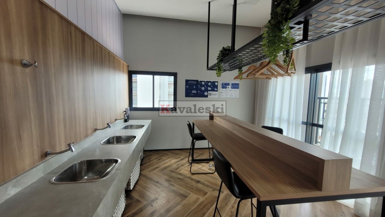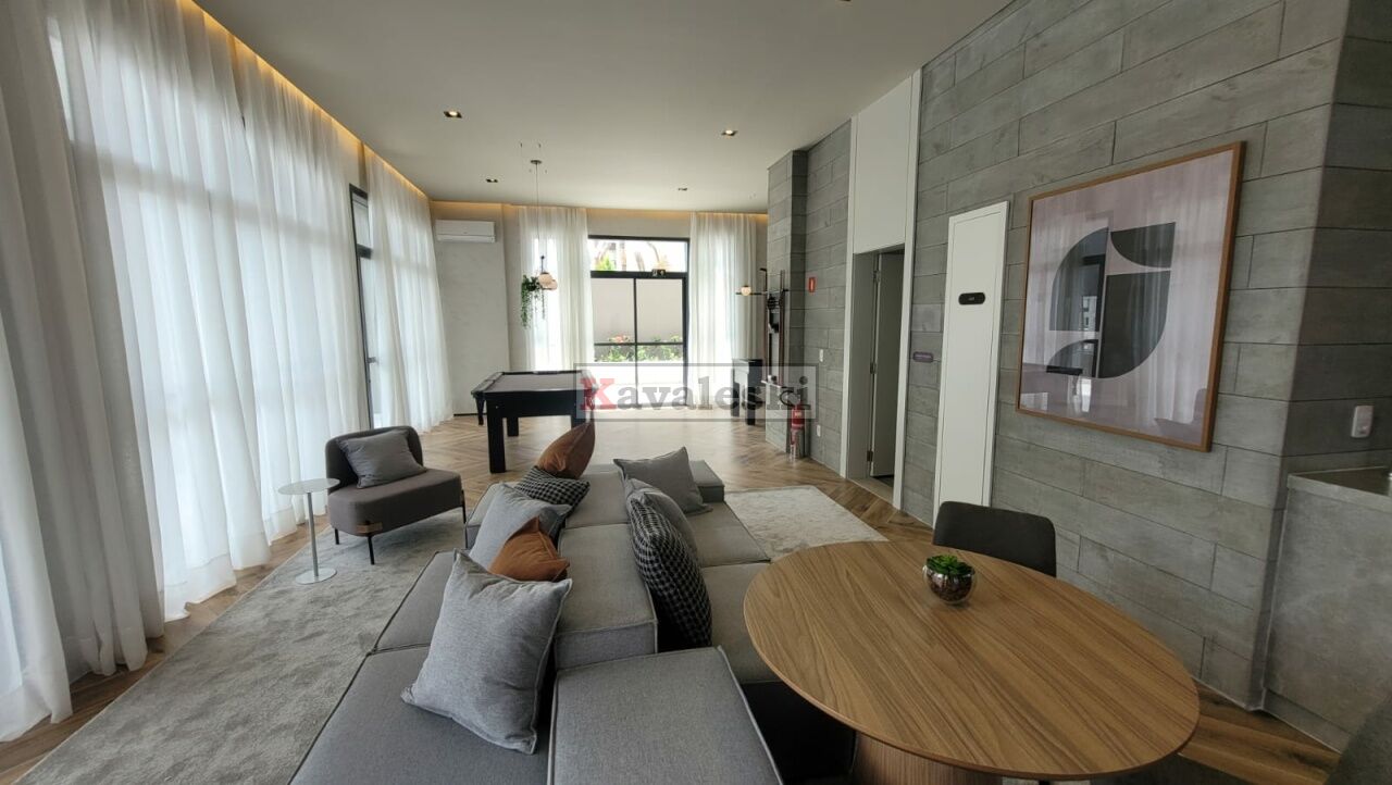 Imóvel novo (Studio), com 34 m², 1 dormitório, sala, varanda e 1 banheiro.