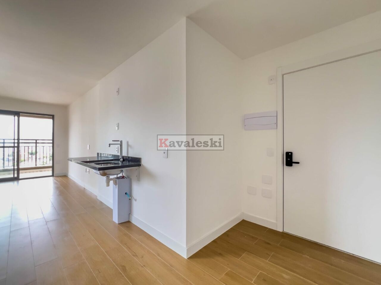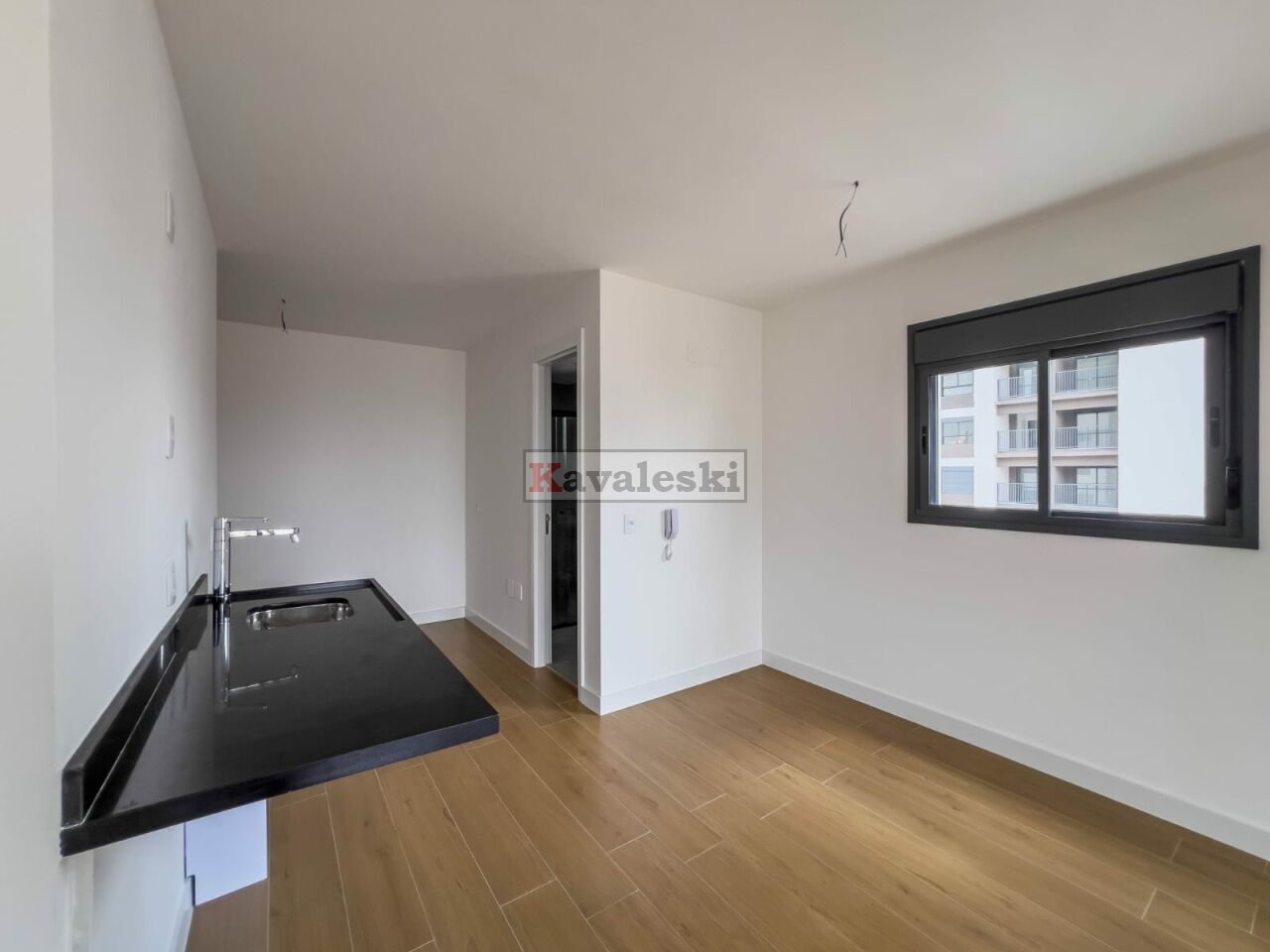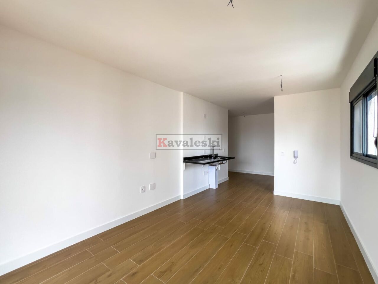 Imóvel novo (Studio), com 34 m², 1 dormitório, sala, varanda e 1 banheiro.