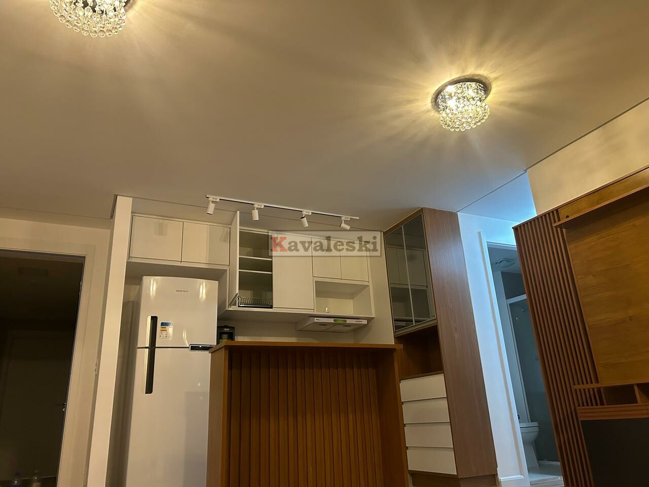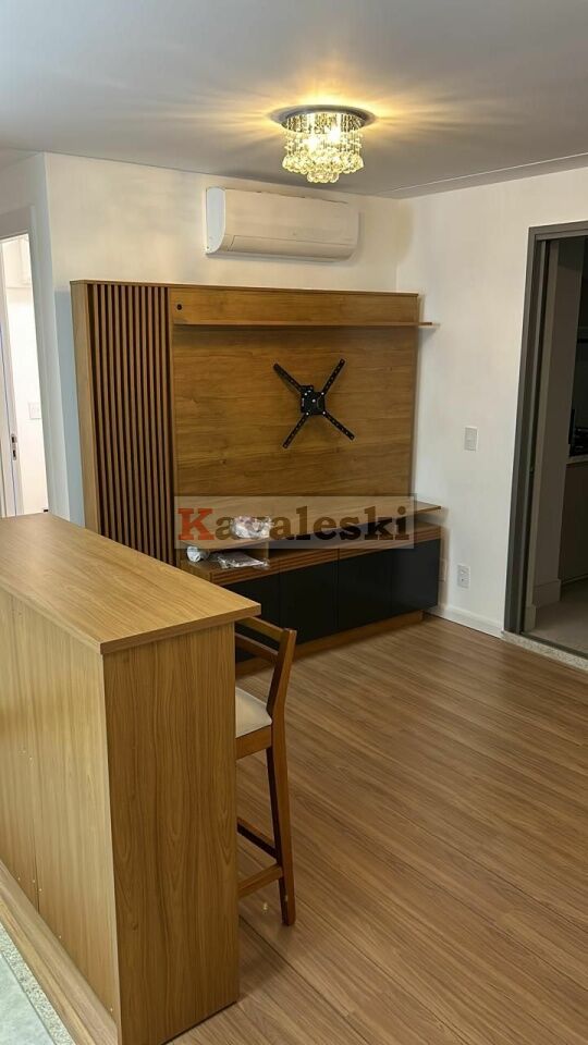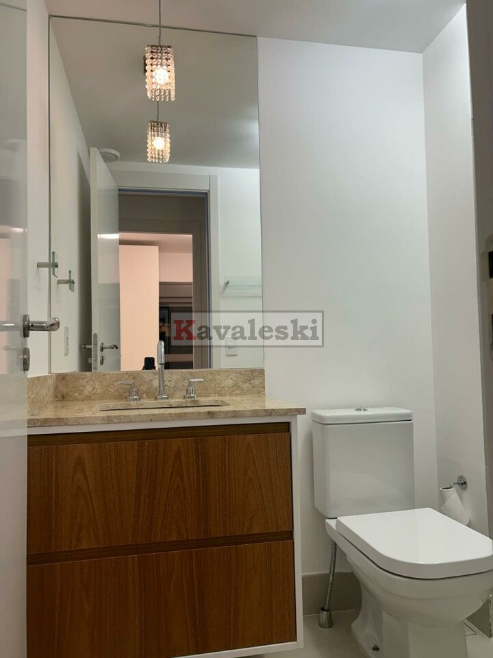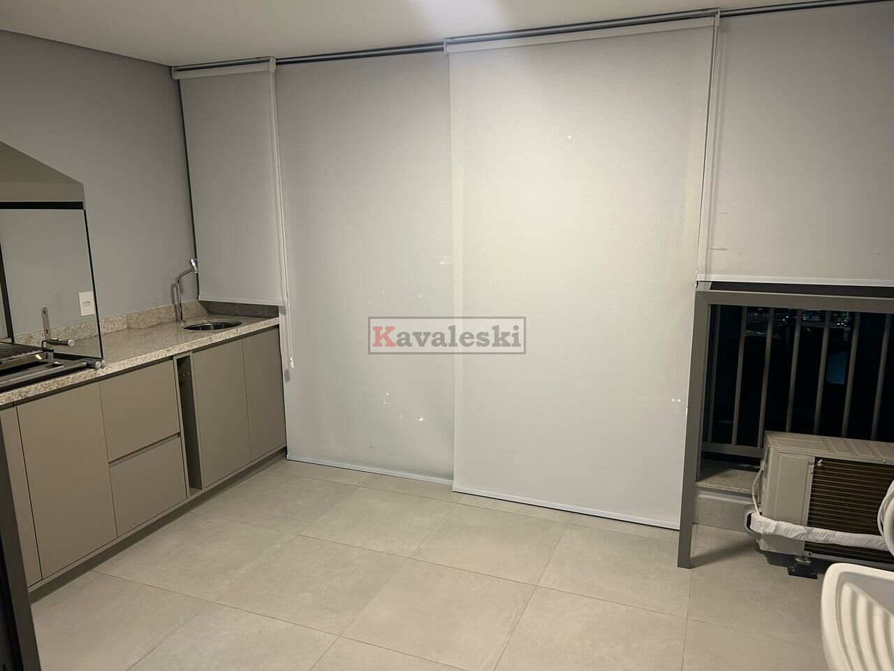instalados: piso, gás para aquecimento de água da cozinha e dos banheiros, chuveiros, box, espelhos; todo climatizado ar condicionado na suite, quarto, sala; armários em suíte, quarto, banheiros, cozinha, lavanderia e área gourmet; camas de casal em suíte e quarto; bancada em cozinha semelhante americana, cooktop, forno embutido, sugar, microondas, geladeira, rack com painel e sofá retrátil/reclinável/box em sala; rebaixamento de teto e iluminação; mesa na área gourmet e máquina de lavar e secar roupas na lavanderia isolada por armário, Envidracamento, proteção solar, armários (inclusive isolando a lavanderia) na área gourmet com churrasqueira. Gás e água individualizados.