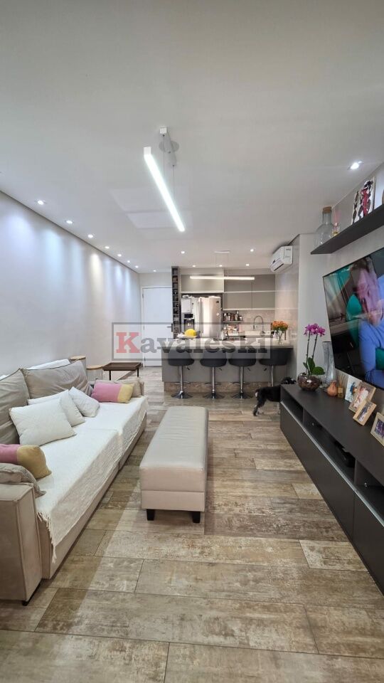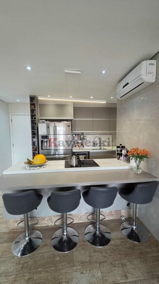 A área social conta com cozinha em conceito aberto com ilha, equipada com cooktop, forno e micro-ondas, integrada à sala e perfeita para receber amigos e família.