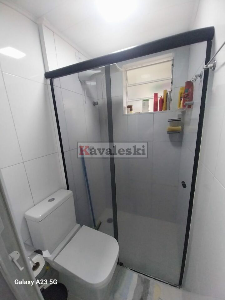 O apartamento está muito bonito, com armários em todos os ambientes e box temperado Blindex.