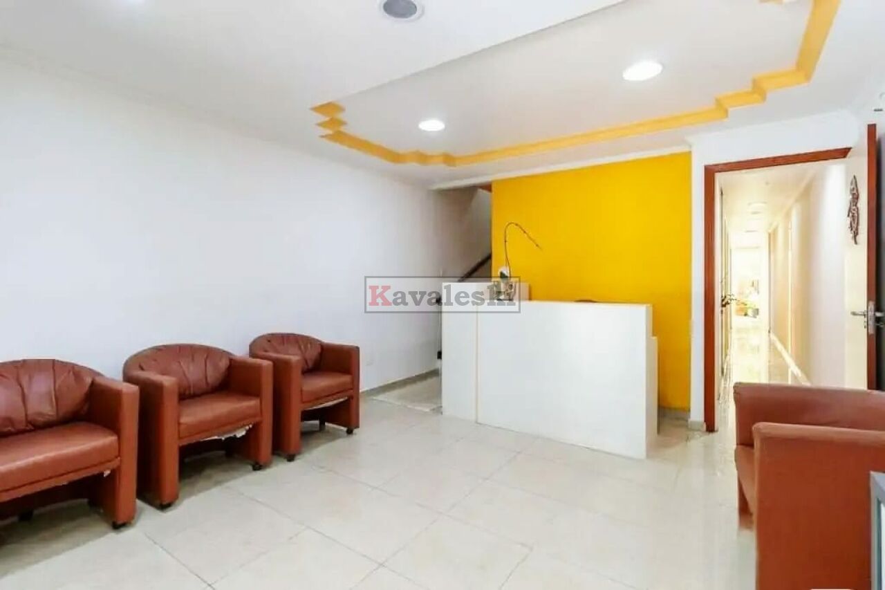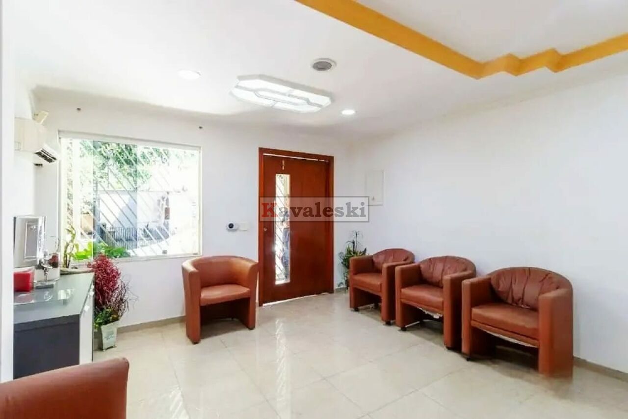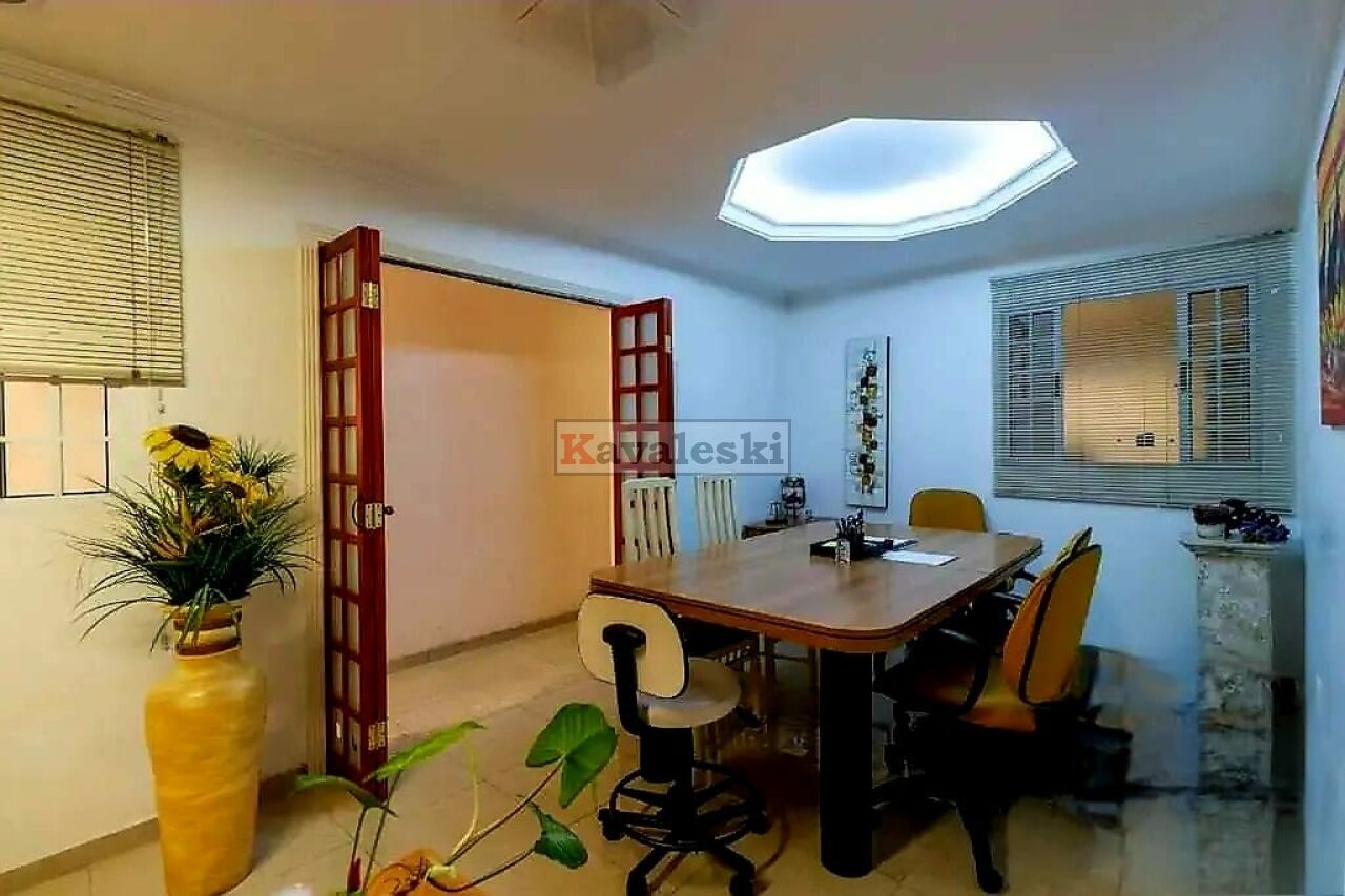 São 158 metros quadrados de área construída, 4 dormitórios (sendo 1suite), 3 banheiros, 1cozinha/1copa, 5 salas, área de serviço, sem vaga de garagem.