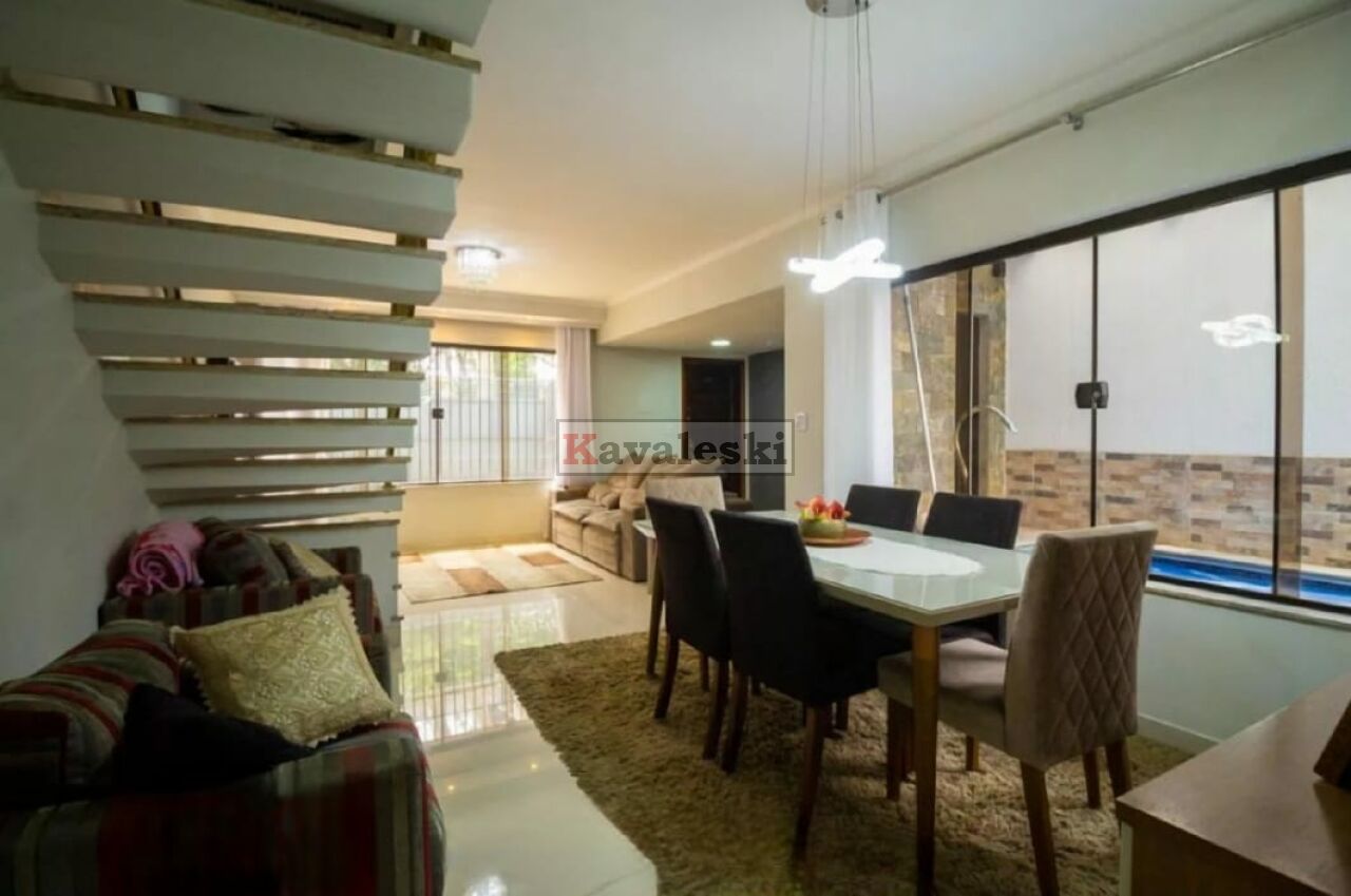 A casa possui ar condicionado nos quartos, um lavabo e um banheiro na área de lazer, 2 vagas de garagem, quarto de empregada, quintal nos fundos e lavanderia externa fechada, com piscina aquecida e churrasqueira.