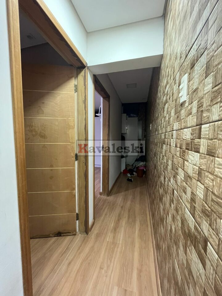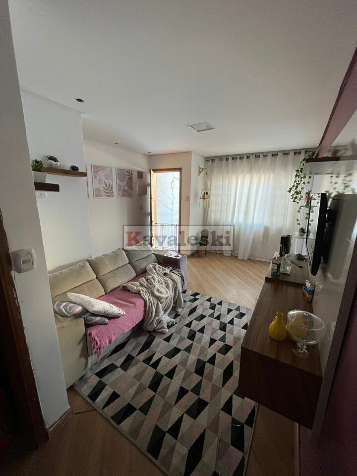 Sala, cozinha, banheiro, 2 quartos sendo 1 suite e área de serviço.