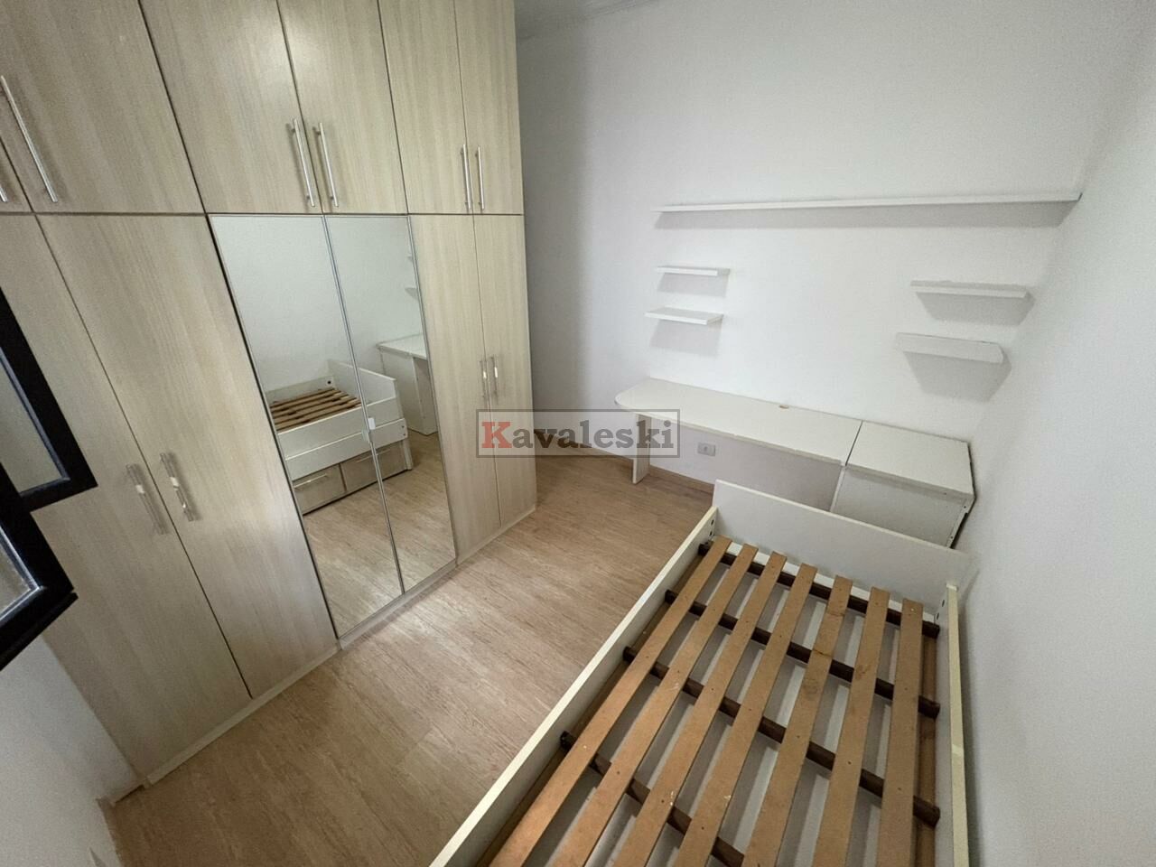 3 dormitórios com armários planejados, sendo 2 com bicama + bancada de estudos e 1 Suíte máster + closet elegante com porta de correr sob roldanas aparentes.