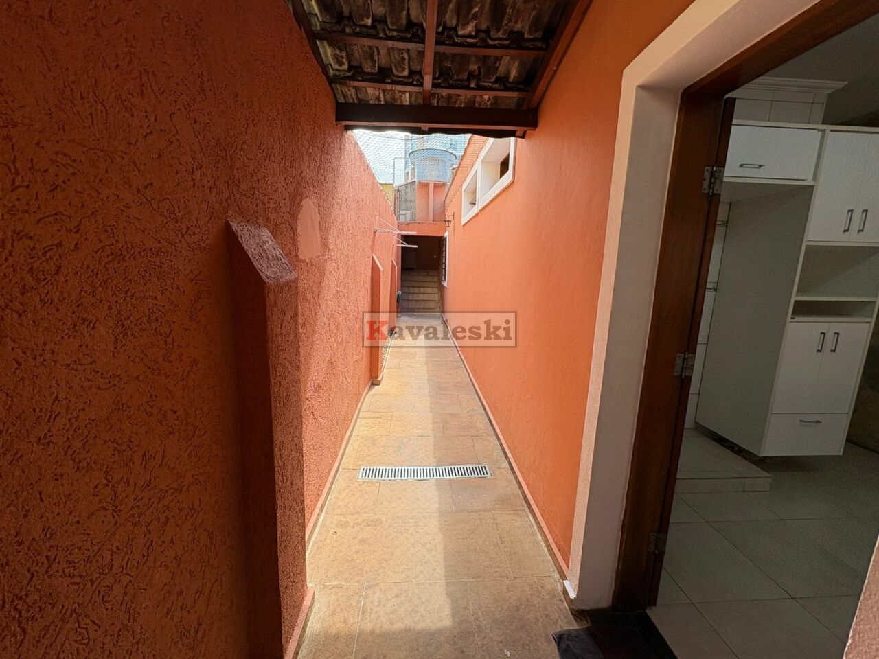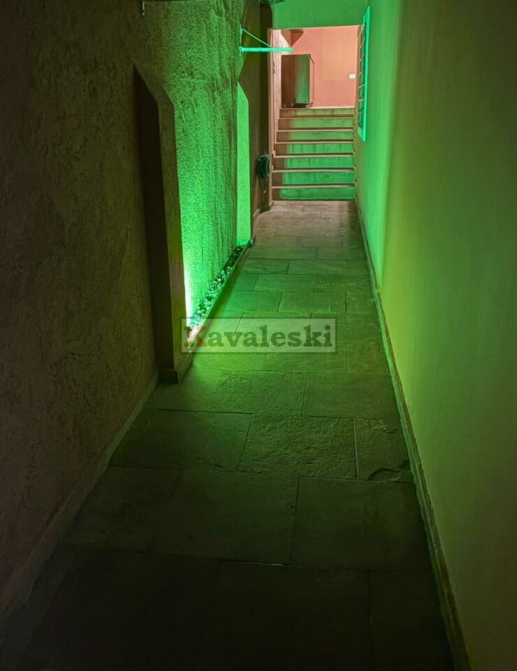 Quintal com Jardim lateral no corredor com iluminação especial verde