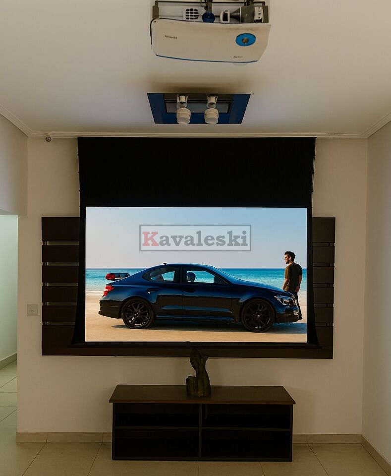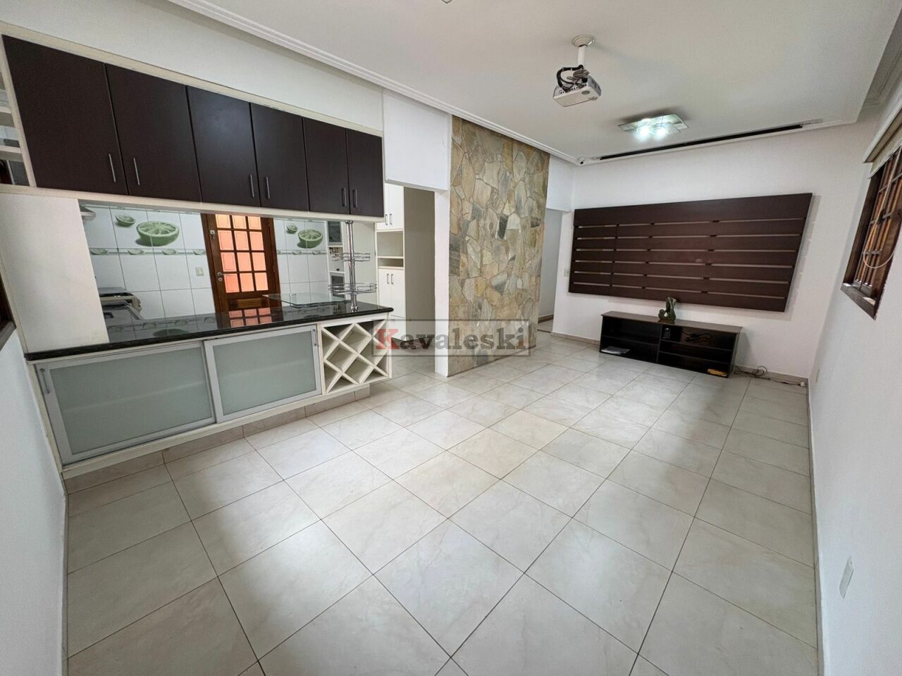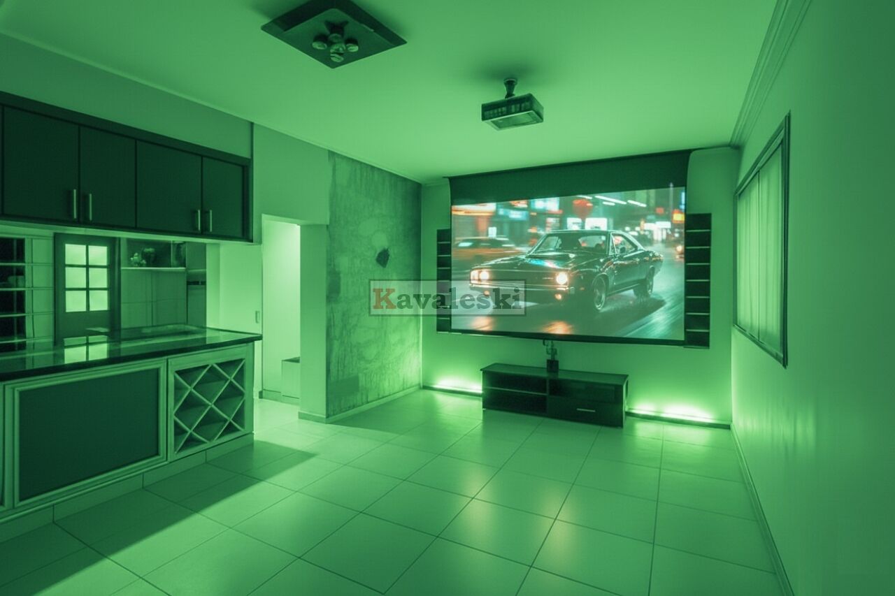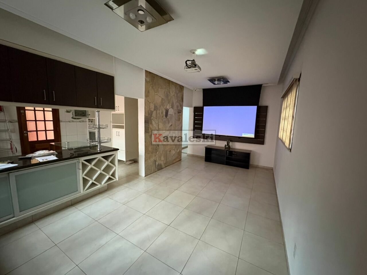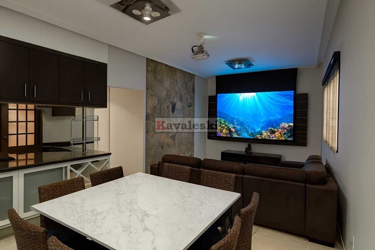 Sala de jantar + sala de estar com home theater: telão e projetor tudo com controle remoto