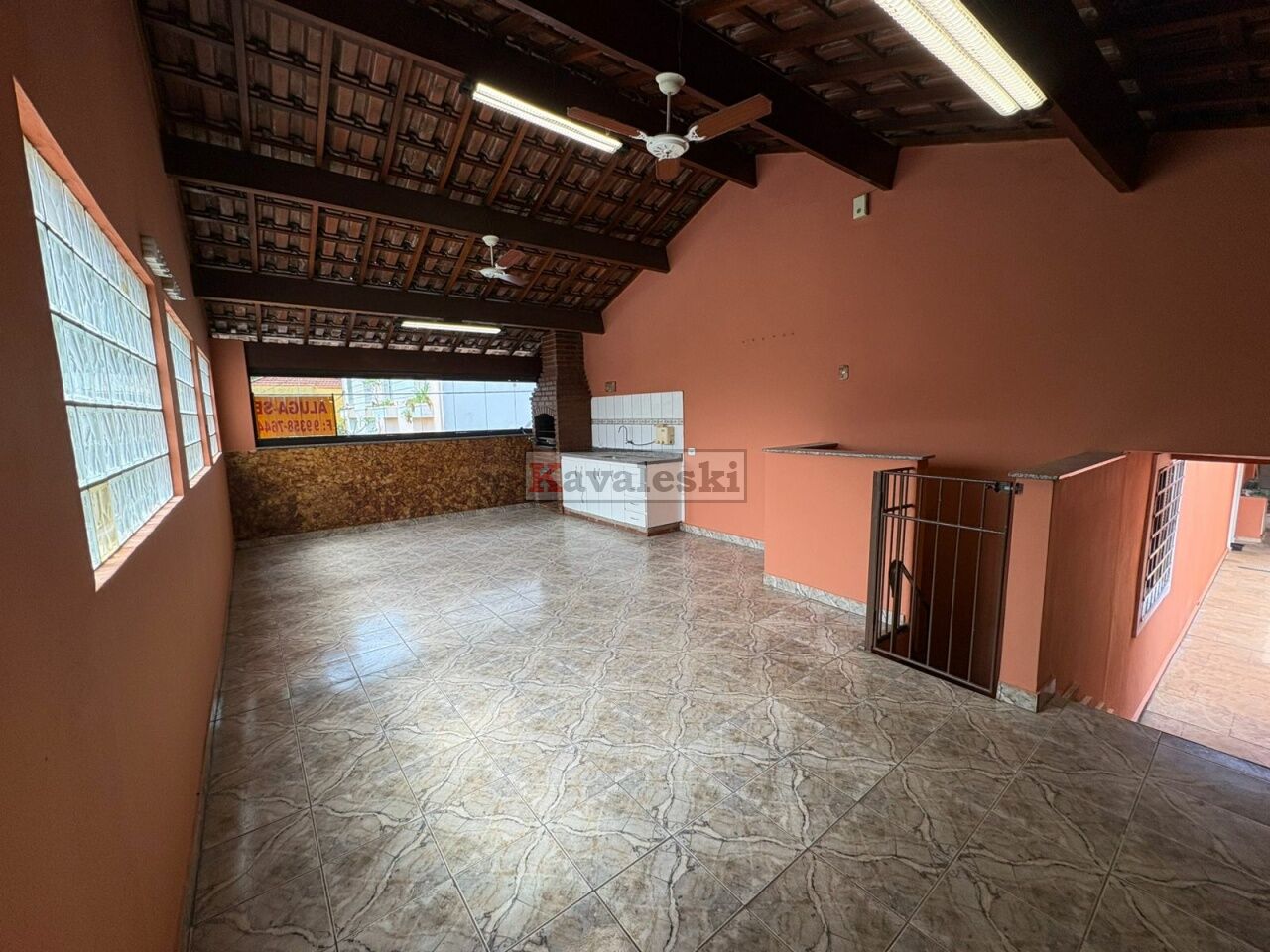 Varanda gourmet incrível com churrasqueira, pia, armários e fechamento em vidro basculante