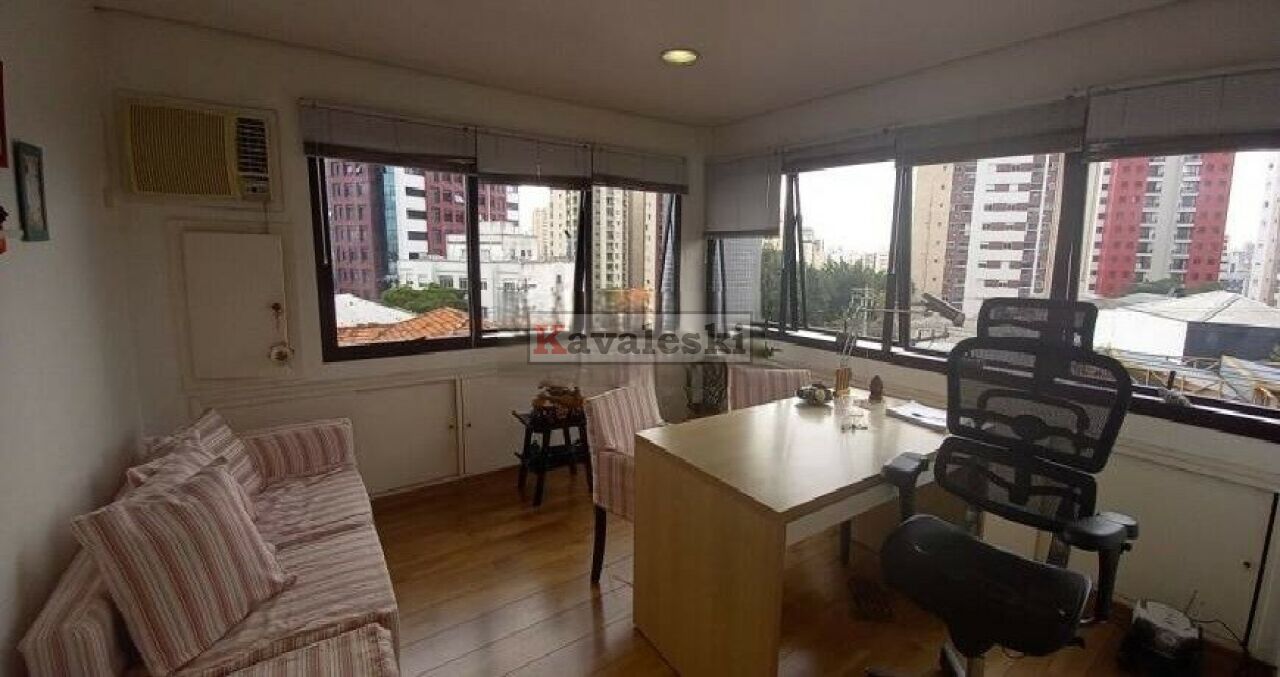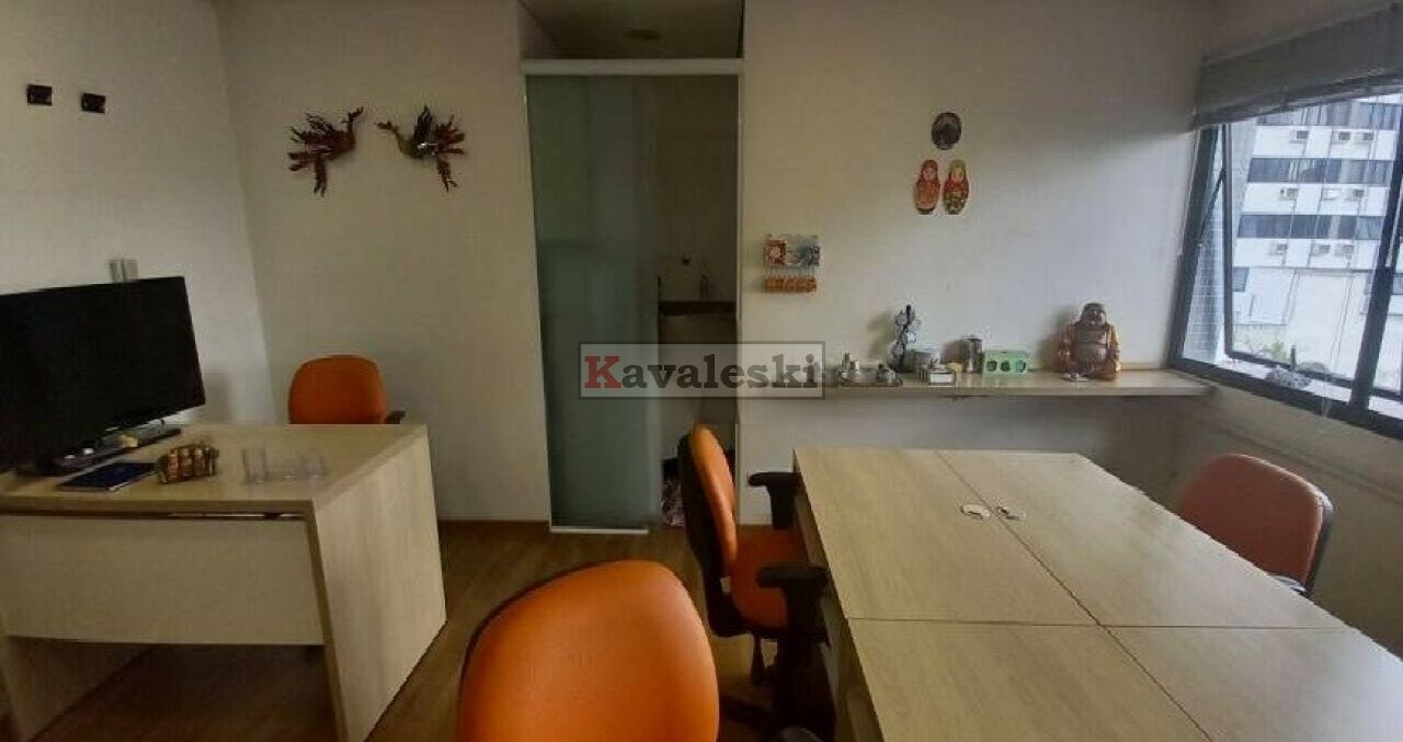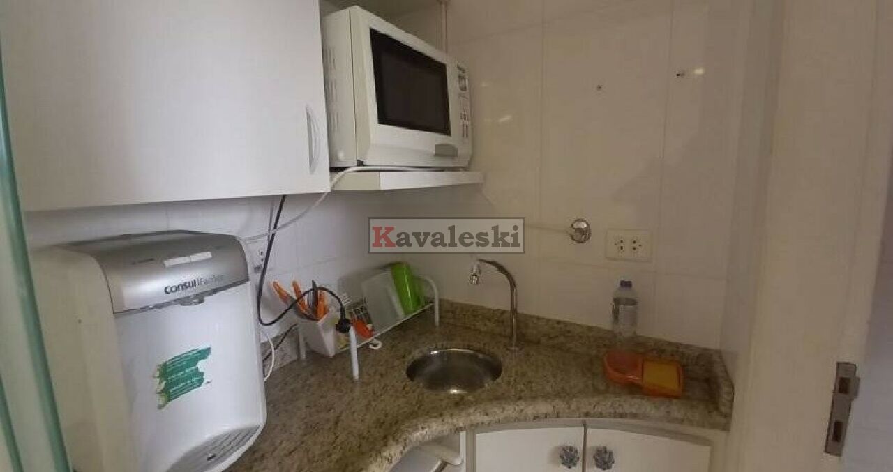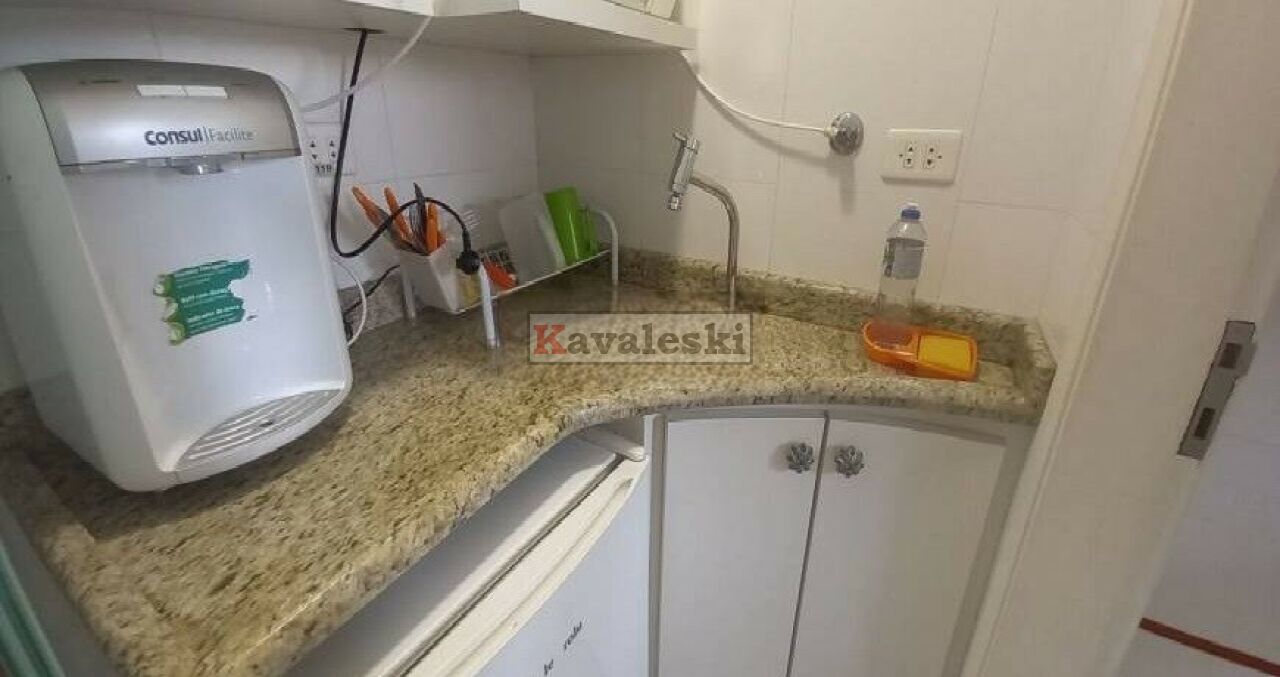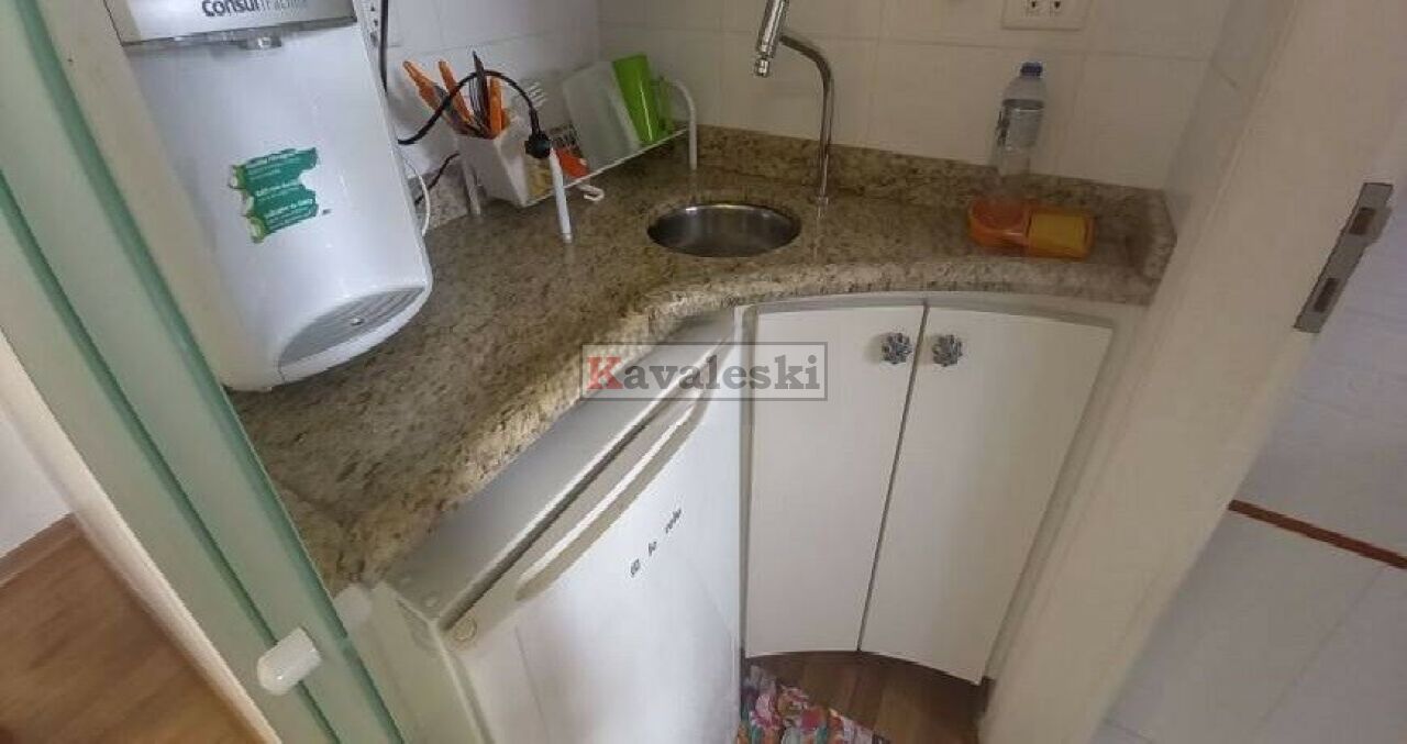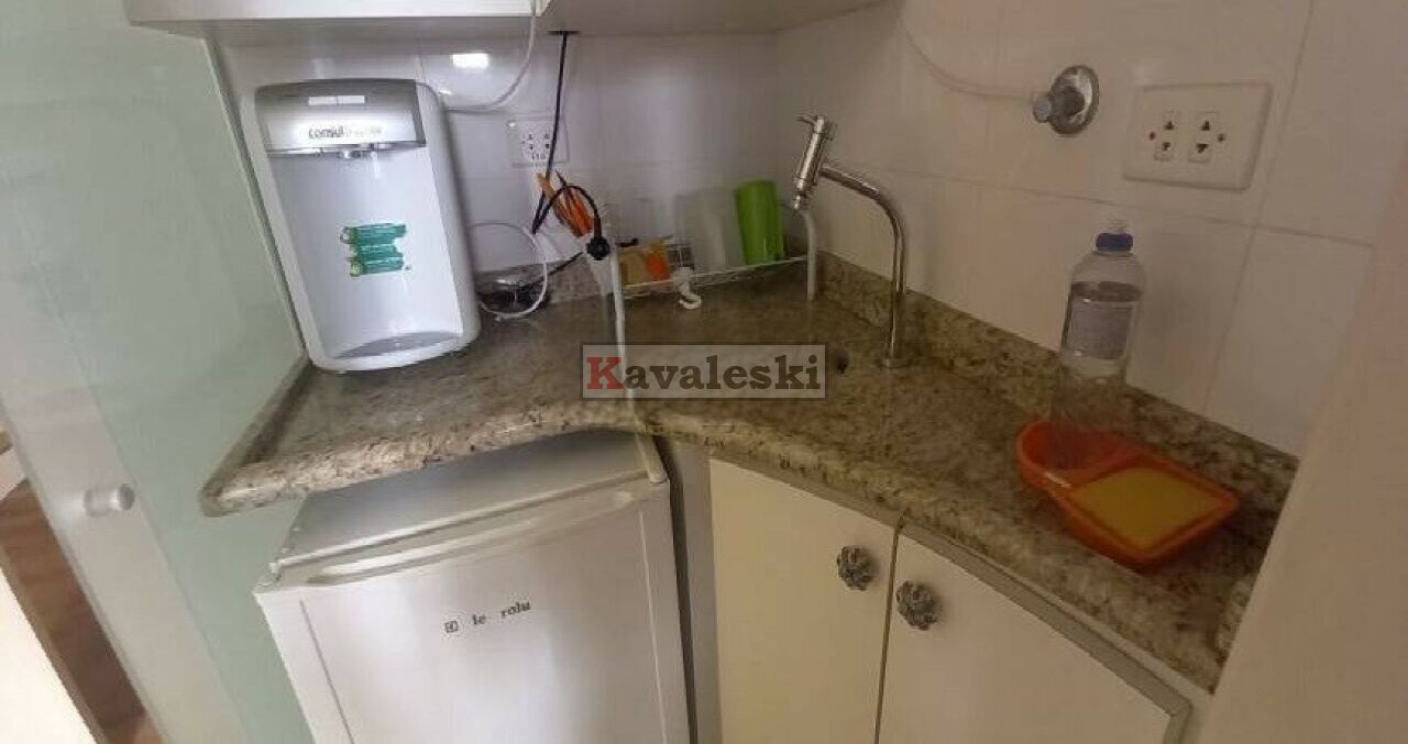 Com 49 metros o espaço comporta sala e banheiro privado, além de copa cozinha, tem um depósito para materiais de limpeza.