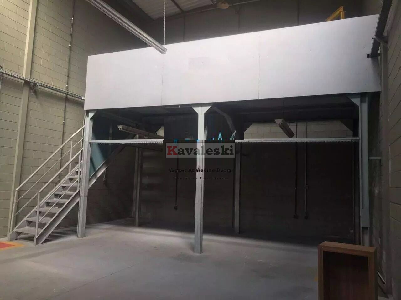 Contém mezanino com escritório com ar condicionado, 2 copas, 4 banheiros, portão automático.