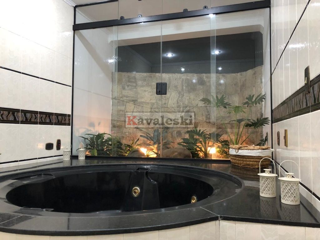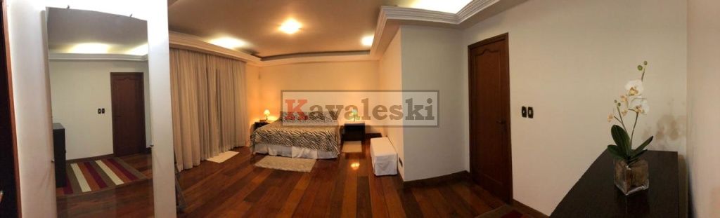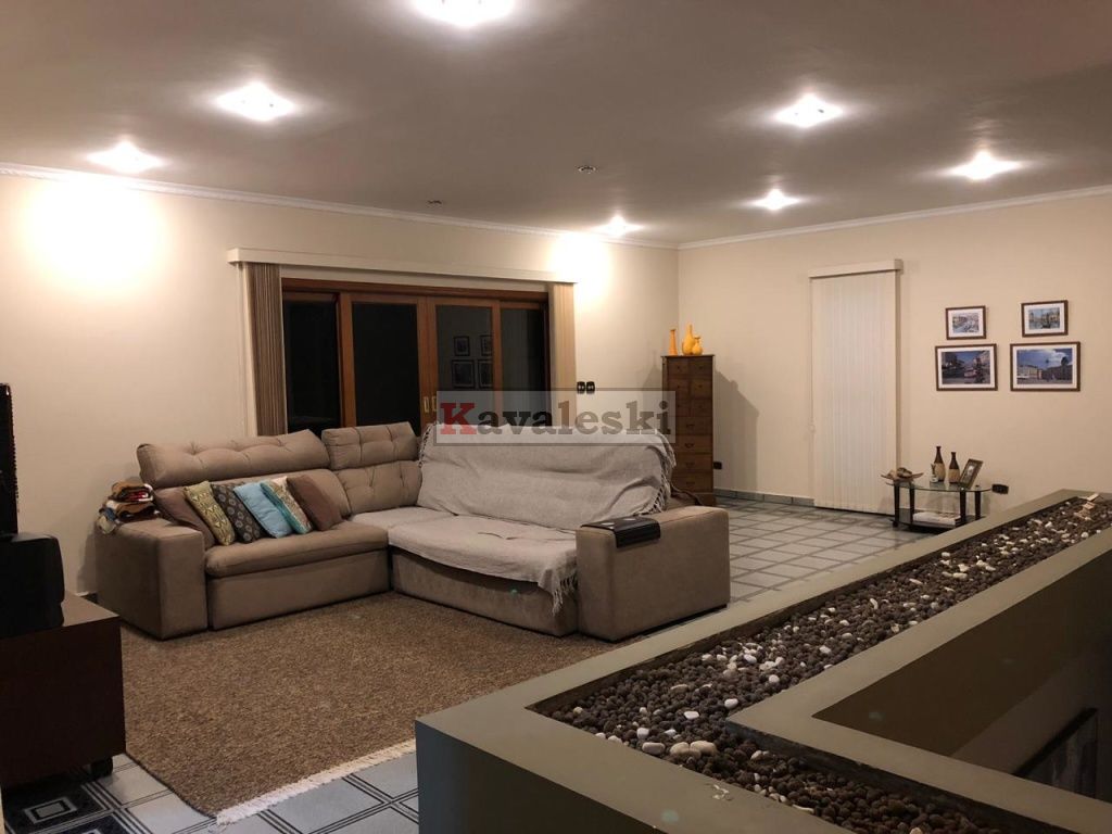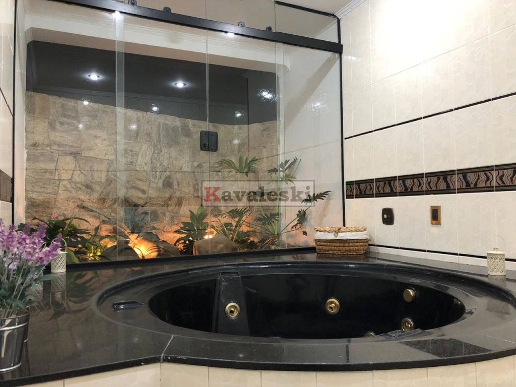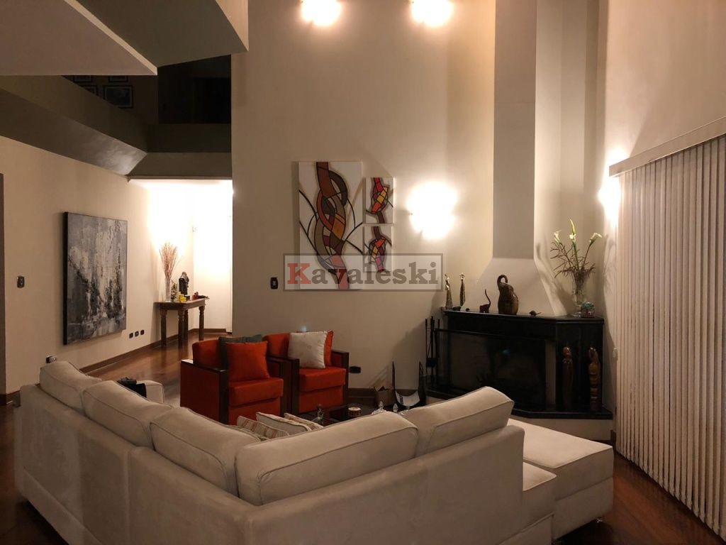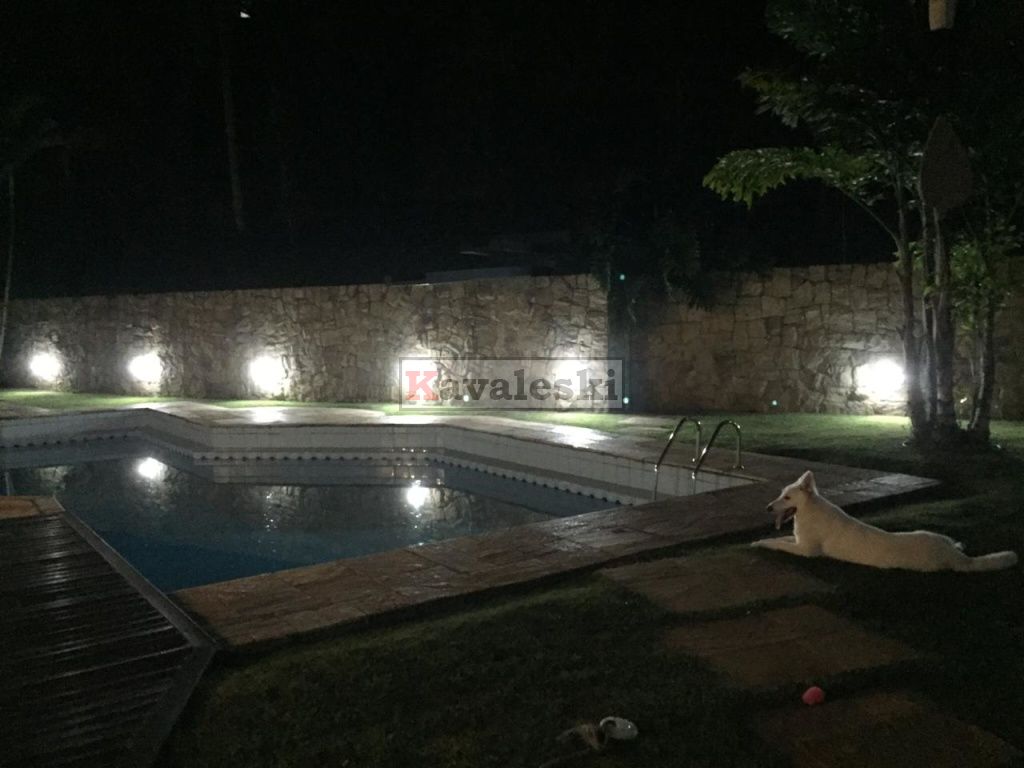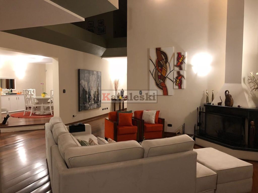 Linda e imponente casa em final de rua tranquila instalada em 1260m2 de terreno. Com 722m2 de construção sólida de parede dupla externa e interna a casa possui caixilharia e metais de primeira qualidade e muita madeira. Aquecimento solar. Garagem coberta e fechada para 4 carros, com entrada independente à casa, banheiro mais 4 vagas externas. 3 entradas independentes à residência: entrada social, lazer e serviço. Aconchegante sala de lareira com pé direito duplo. Lindo lavabo estilo provençal. Sala de jantar ampla e iluminada com vista para seu jardim. Cozinha muito bem iluminada repleta de armários com pia dupla, bancada, despensa própria e sala de almoço. Lavanderia repleta de armários, tanque duplo e local para instalação de até 2 máquinas de lavar. Prático anexo para empregado(s) com 2 cômodos, cozinha e banheiro completo com chuveiro. Ampla sala de TV com acesso à área de lazer. Escritório prático e espaçoso. 4 quartos sendo o primeiro a suíte máster com closet, hidromassagem e jardim de inverno, uma segunda suíte com hidromassagem e outras duas semi-suítes igualmente com hidromassagem. A área de lazer é composta por piscina com sua ampla casa de bombas, espaço gurmet com churrasqueira e forno iglu contígua ao salão de jogos, cozinha equipada com armários, despensa, 1 lavabo e um segundo espaço contíguo composto por uma com sauna seca, vestiário e um banheiro completo. A casa é muito silenciosa e ao mesmo tempo possui uma excelente acústica nos ambientes devido ao pé direito duplo das salas, sendo que a sala da lareira aquece também a sala de TV. Todos os quartos possuem sacadas e uma excelente vista permanente ao condomínio e a natureza do entorno, sendo que a suíte máster possui vista para toda a área de lazer.