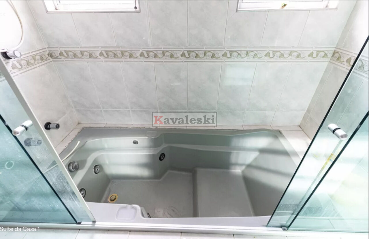 A casa principal possui 2 vagas de garagem, sala ampla para 2 ambientes, cozinha, lavabo, área de serviço coberta, 1 banheiro e 2 dormitórios, sendo que 1 deles é suíte com varanda e banheira.