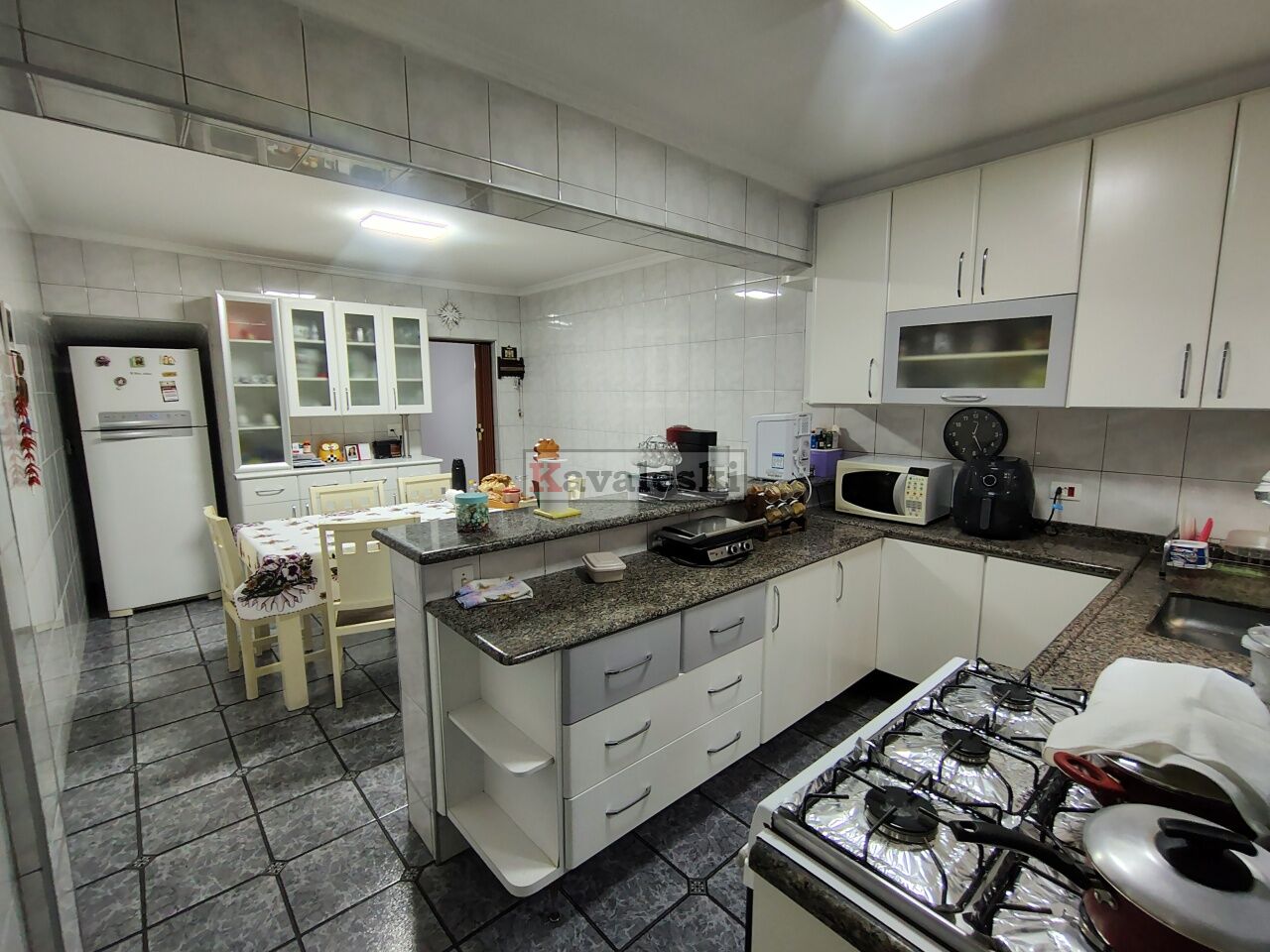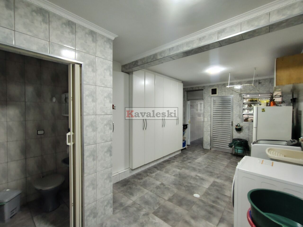 No térreo possui 1 vaga, sala para 2 ambientes, cozinha ampla com armários embutidos, área de serviço coberta muito espaçosa com um grande armário embutido e 1 lavabo.