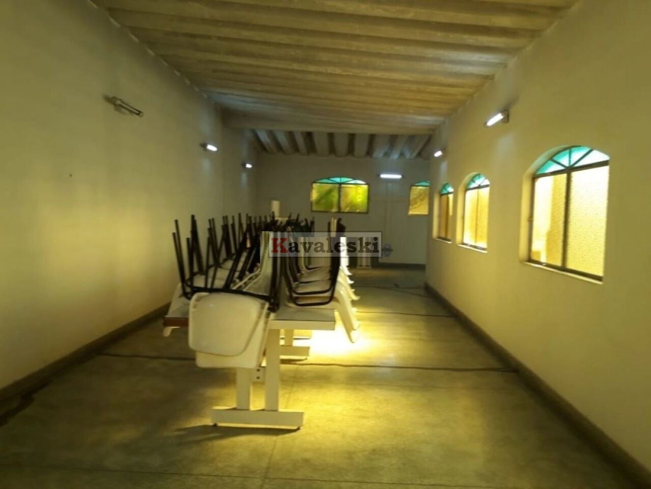 Possui 2 amplos salões, cozinha, banheiros, sala para arquivos e quintal.