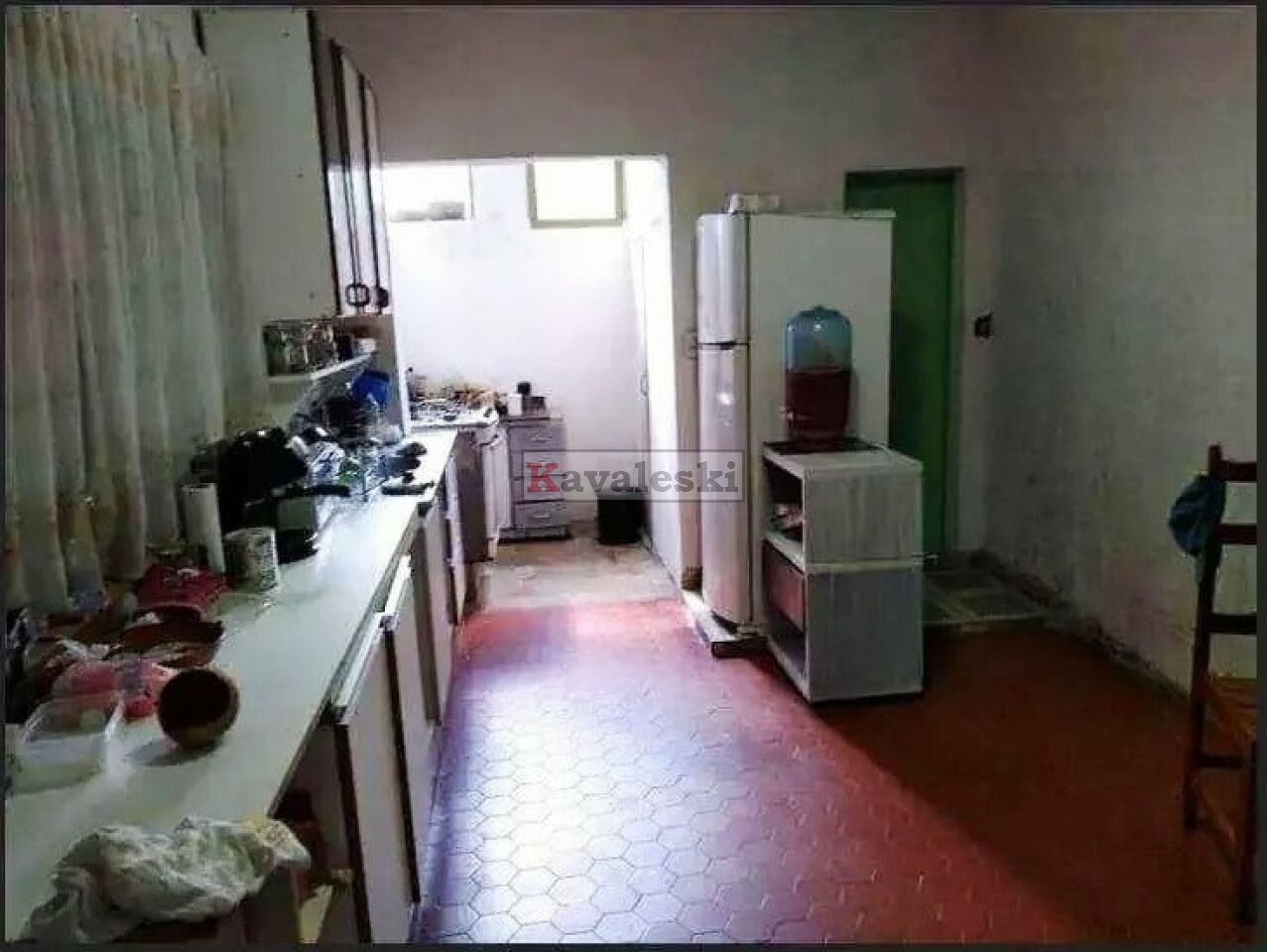 cozinha, sala, banheiro, dormitório e área de serviço.